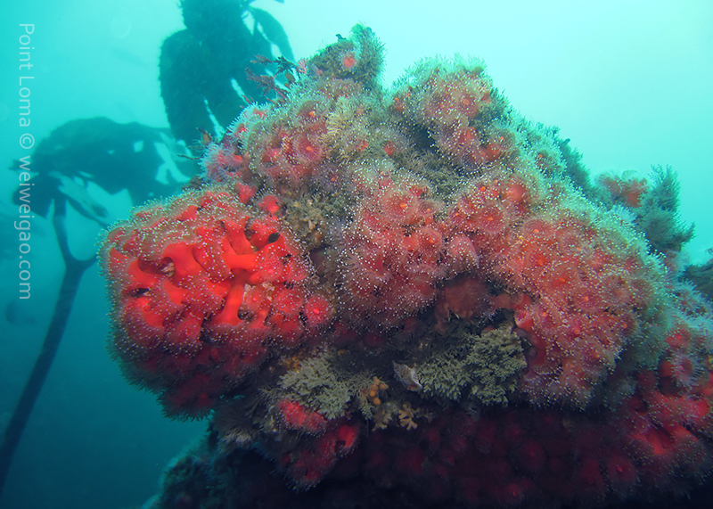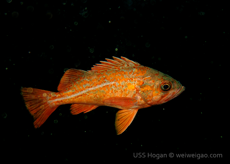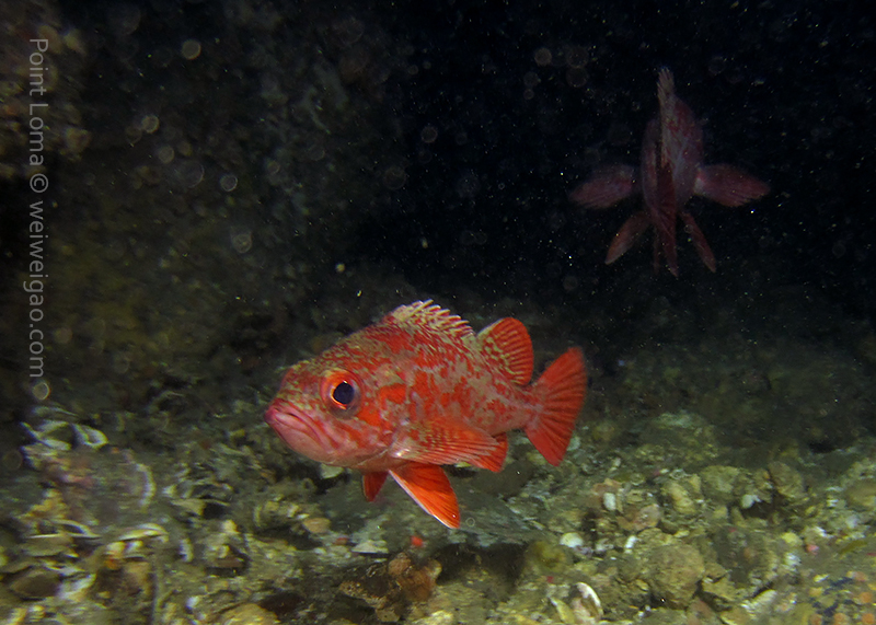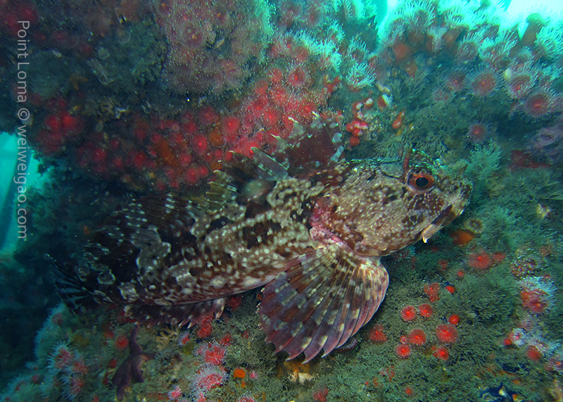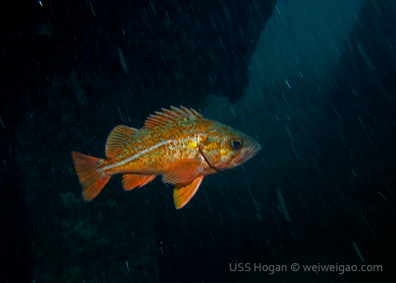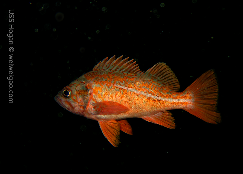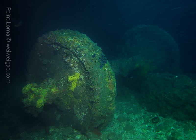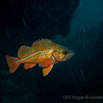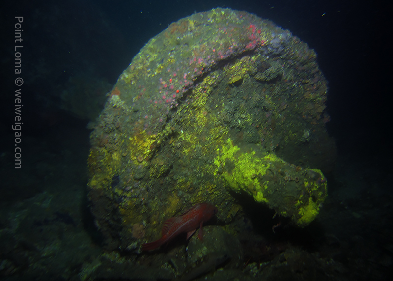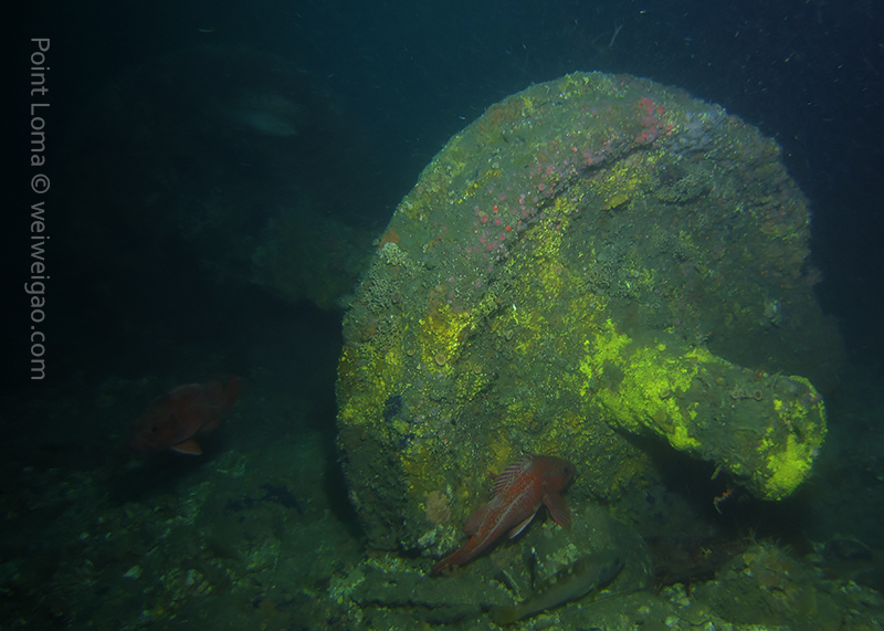 Timo, David and Weiwei joined me at 7AM this morning to head to the Mexican border and dive the Hogan. The seas were so flat we were there in ~30 minutes only (11 miles from Shelter Island to the Hogan). There was a pretty strong current from the north but we deployed lines and made sure everybody had a surface marker just in case. We all went down 125ft deep and found the anchor right next to the stern. Lots of very large lingcods (up to 3ft long) including one guarding a large pack of eggs and many fish around. We saw only one wolf eel (the other ones must all have been at the bow!). Viz was 40ft at the surface and about 25ft down.