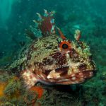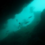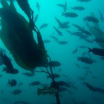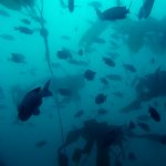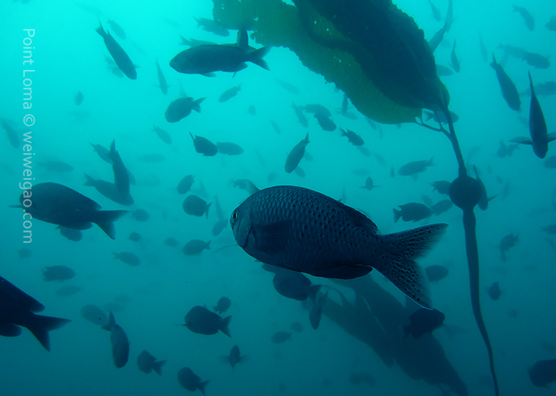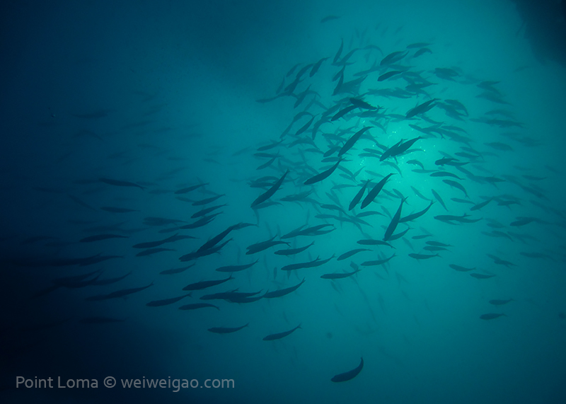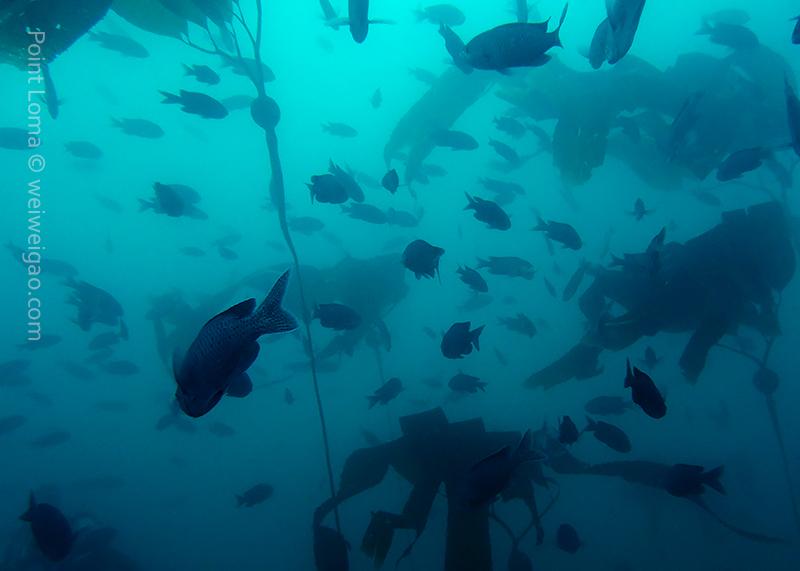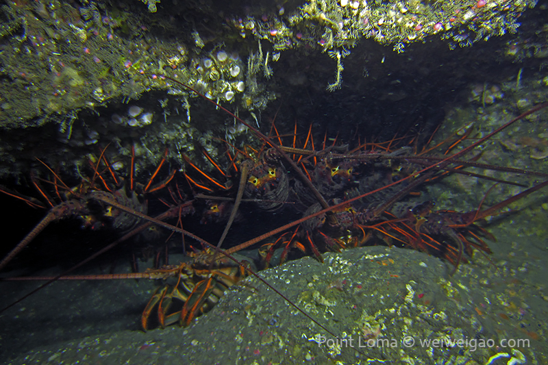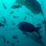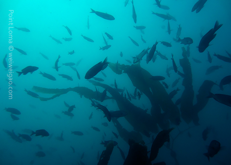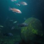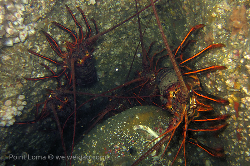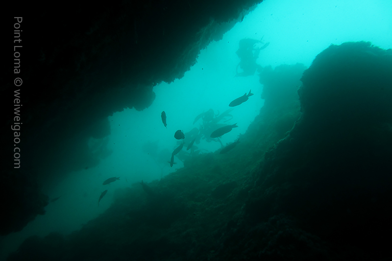 From there, we went back north to Train Wheels and got distracted by several whales, including two that went straight under the boat maybe 10ft deep. There we found poorer viz ~ 10ft but a lot of life as usual: crabs, lobsters, blacksmith, opaleye, sheephead. A sea lion paid us a visit in the cave scaring all the schools of smaller fish that were hanging in the water column. A word of caution: there is a lot of fishing line there that could get dangerous and we will remove it next time we get there.