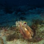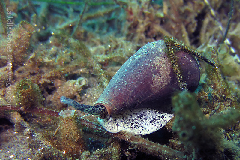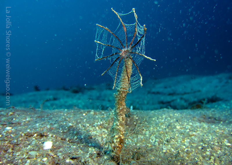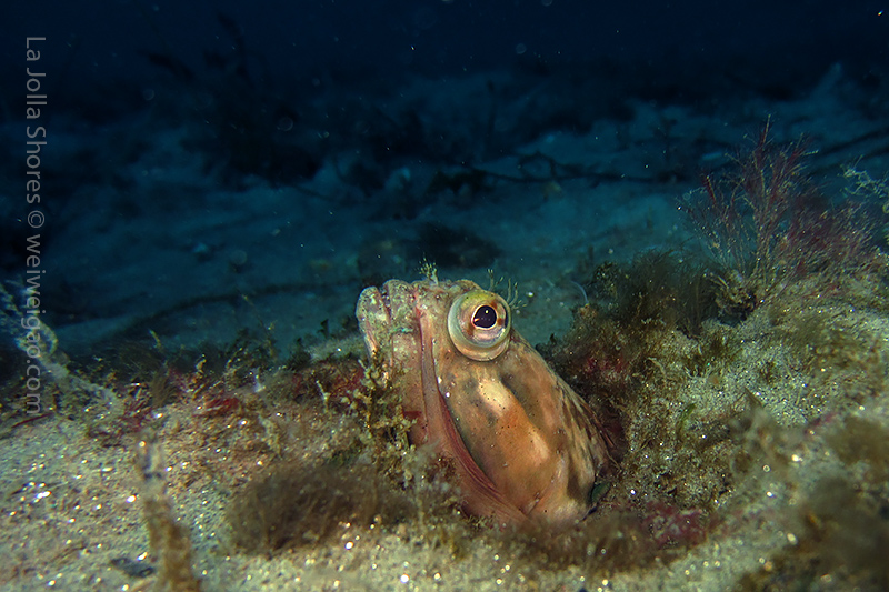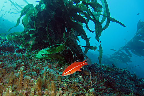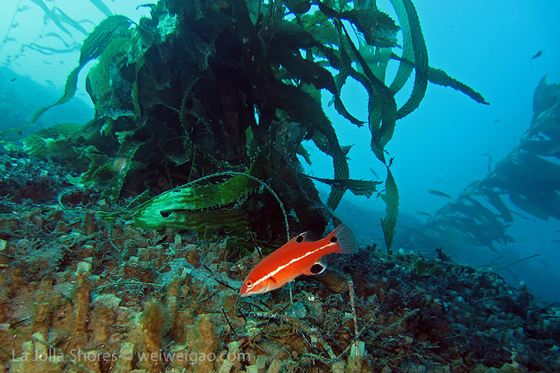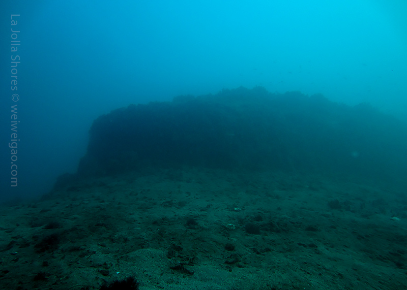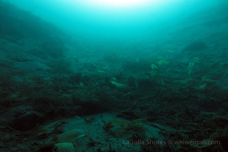 I kicked out toward the crap patch. However, the morning sun was too bright. I had some difficulty to open my eyes and see the shores. I decided not to bother the line up and dropped early. After a few kicks along the sandy bottom, I got to the edge of the canyon. For a while, I couldn’t recognize my location. I haven’t been diving during the day light for ages. The landscape was a little bit confusing. Plus I haven’t been to the canyon recently. Obviously the kelp has grown a lot. Until I reached the Vallecitos Point when I figured out the location.