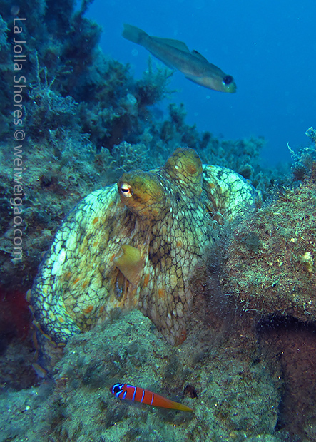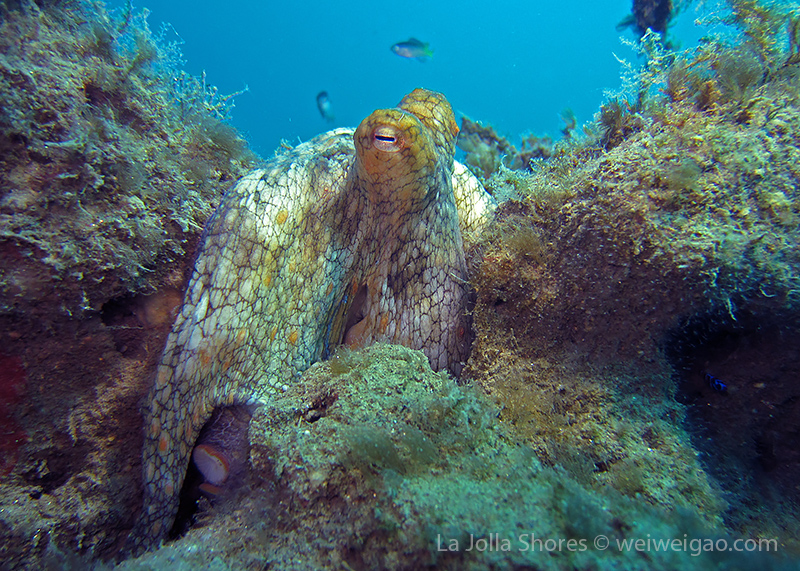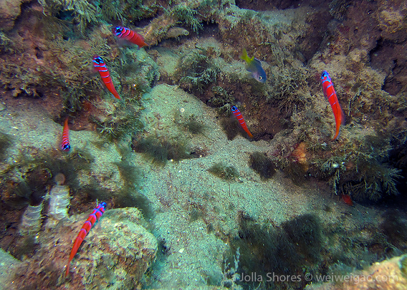 It’s a sunny beautiful day in San Diego. Get to meet Calli and her dive buddy. The condition at La Jolla Shores was fantastic. The water was completely flat. If one dropped the fins in the water, I am sure they will stay at the same location for hours. The visibility was fantastic. At the canyon was easily over 30 ft, with the beautiful blue water. It was like tropical diving.