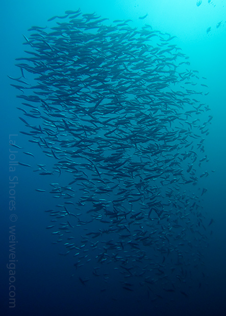 At the point, I looked up and saw a giant bait ball swirling like a tornado. It moved along the canyon and disappeared afar.