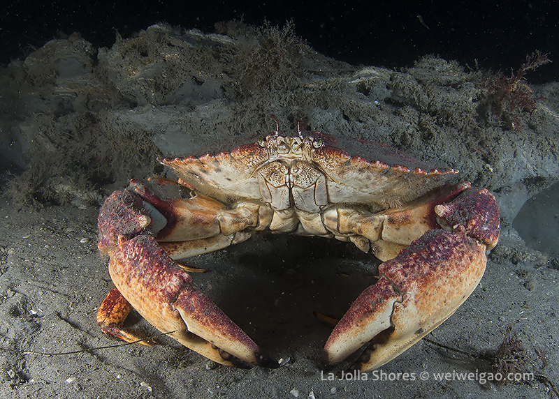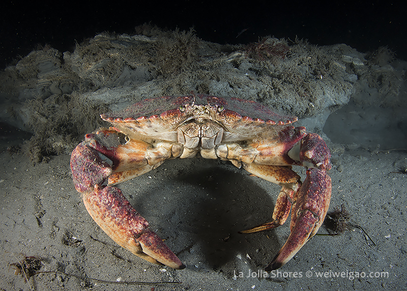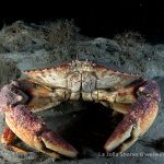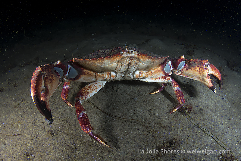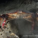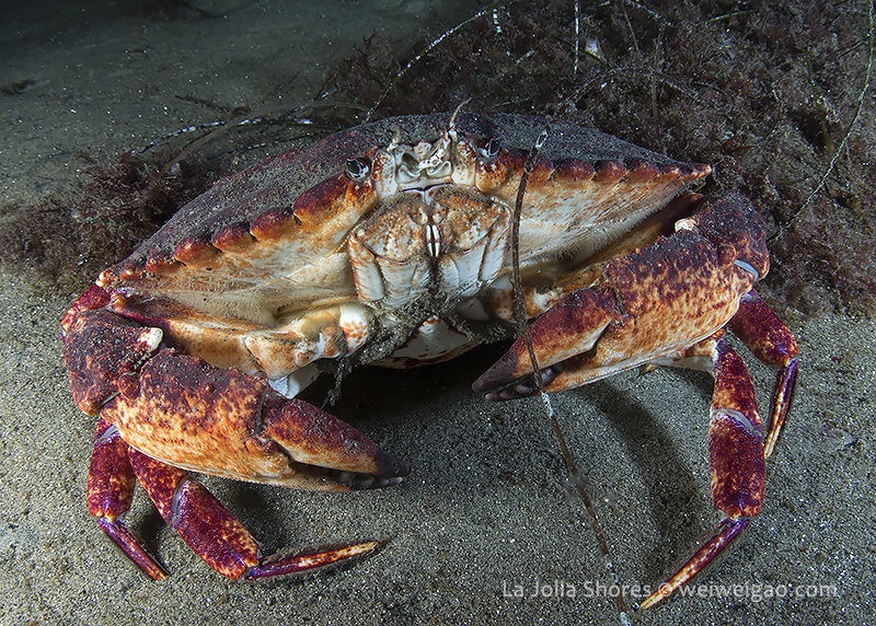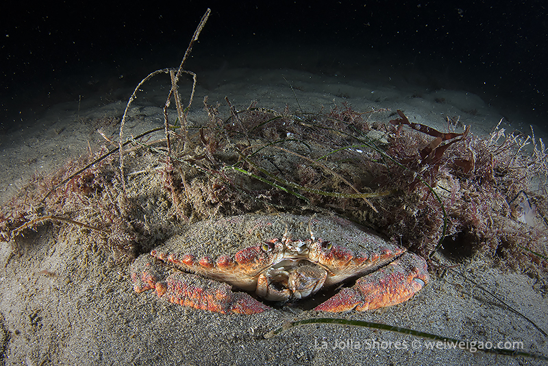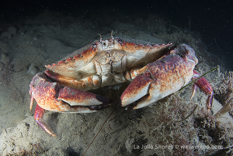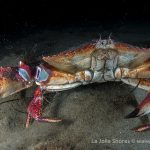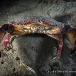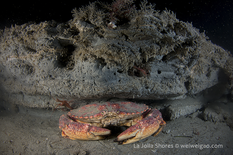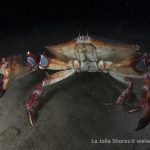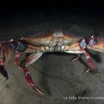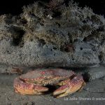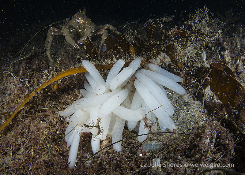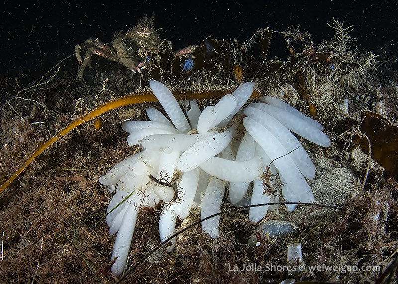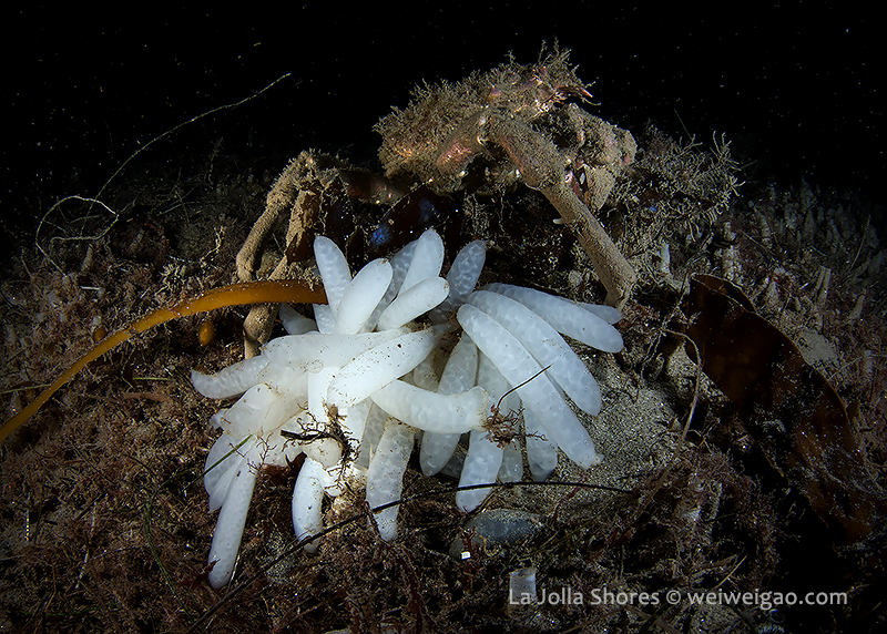 On the south wall, I came across some squid eggs. A sheep crab trudged by the eggs but it didn’t seem to care.