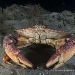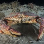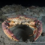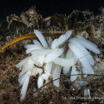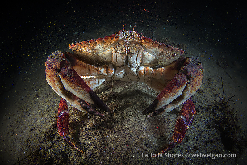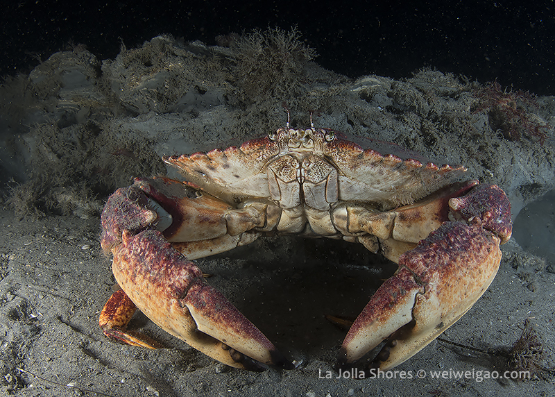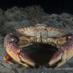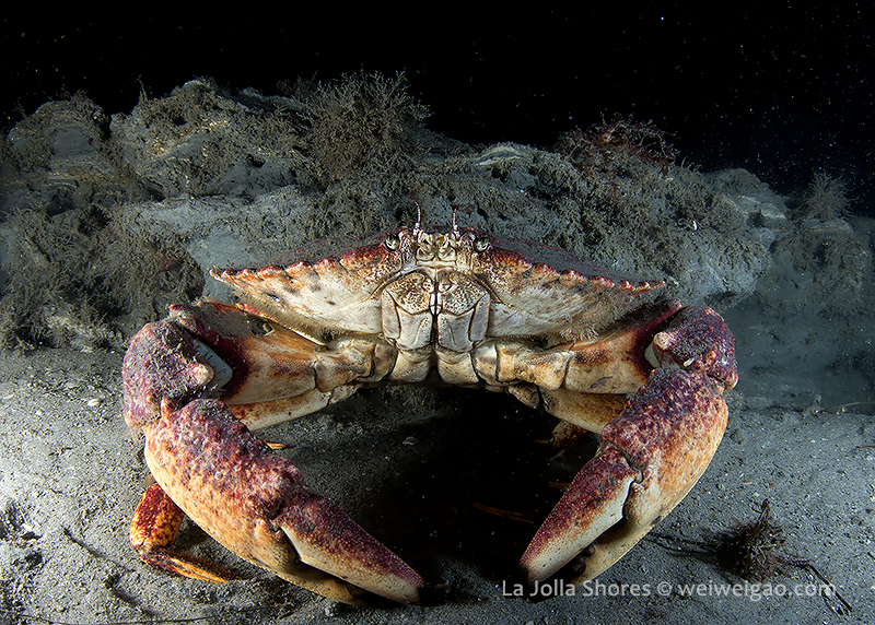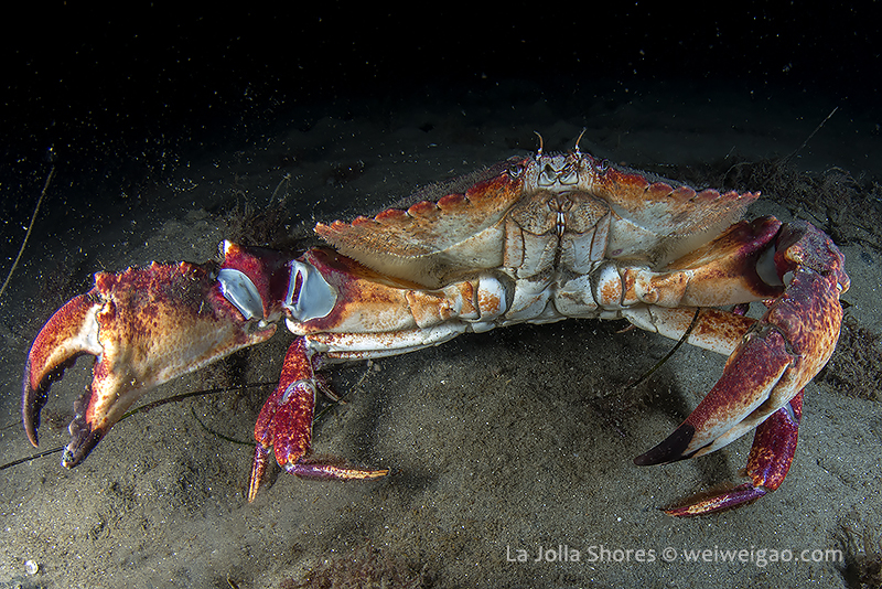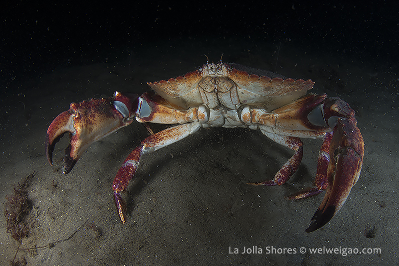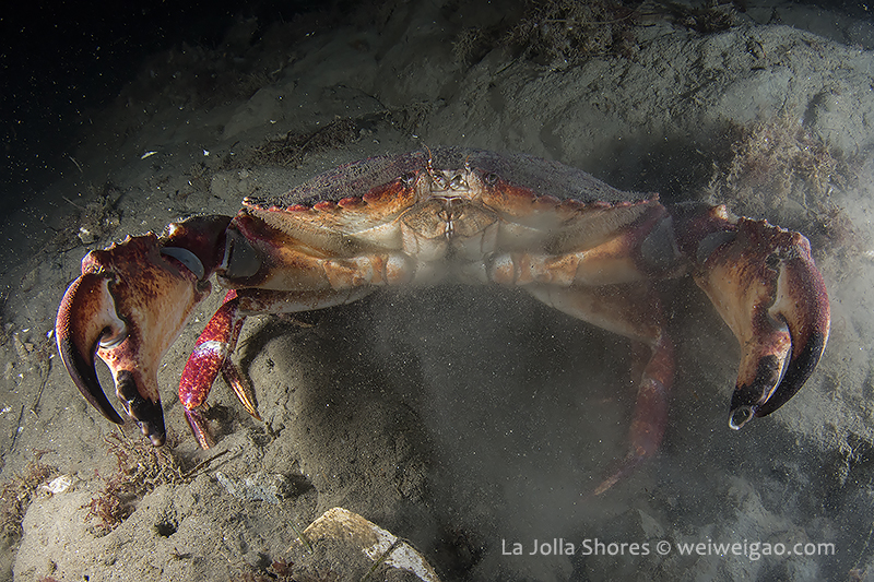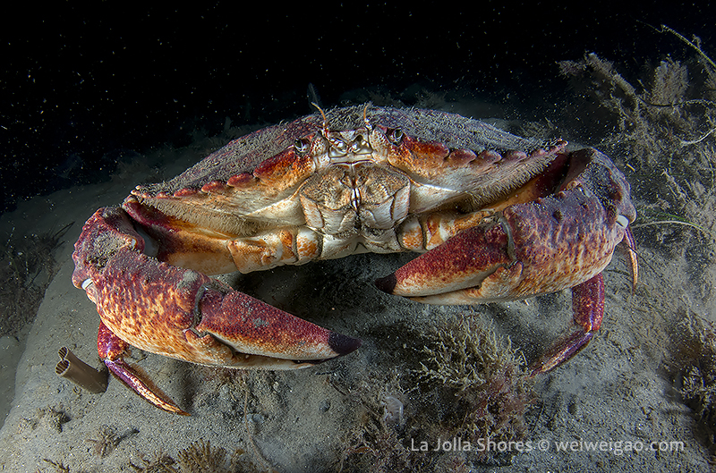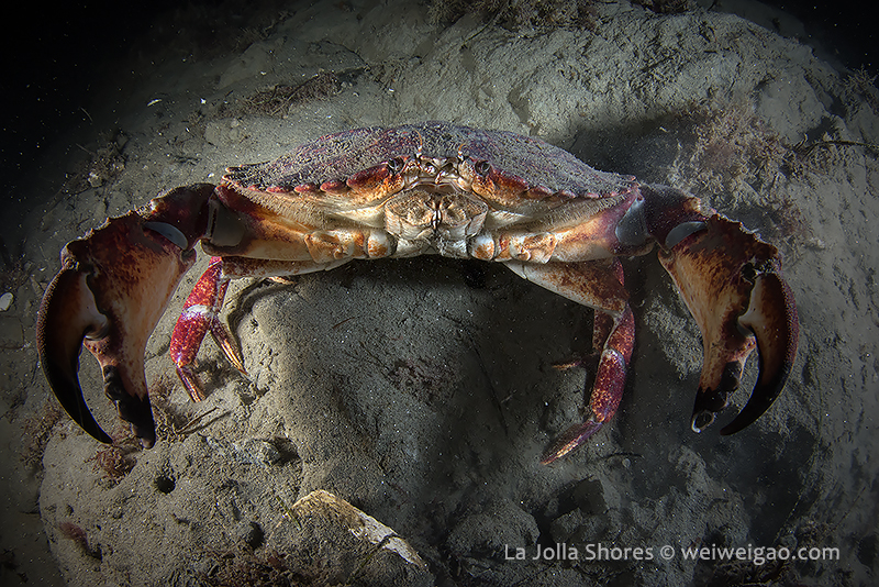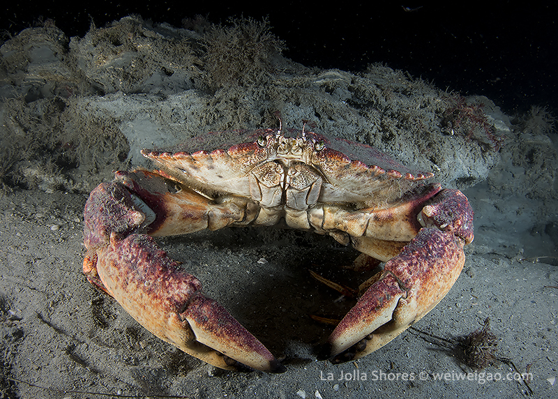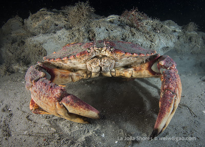 On the south wall, I came across some squid eggs. A sheep crab trudged by the eggs but it didn’t seem to care.