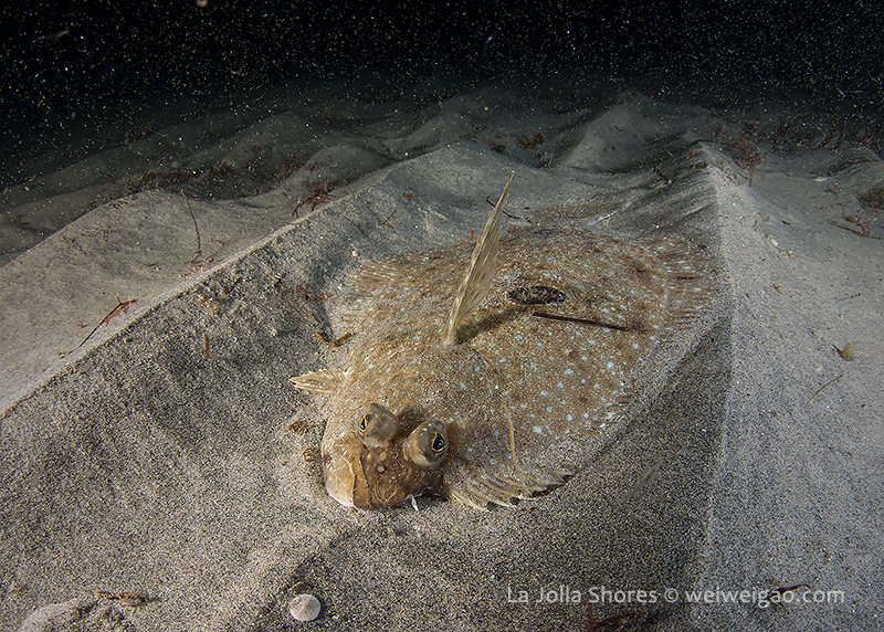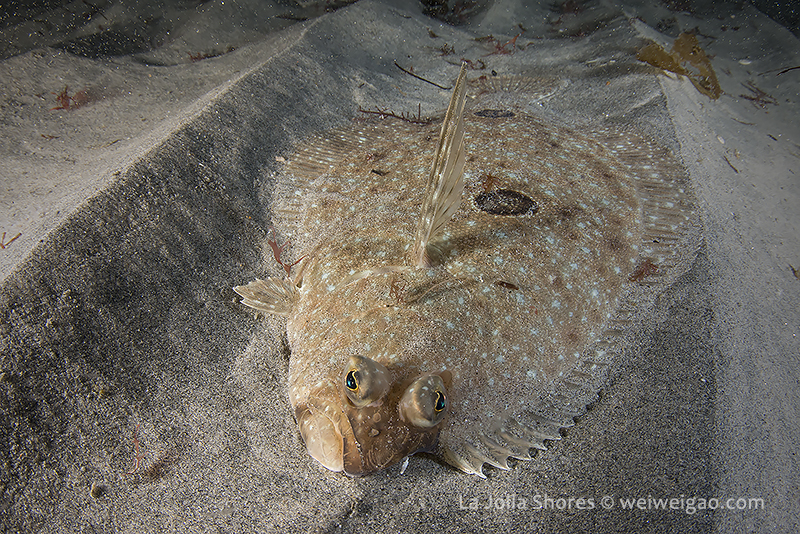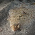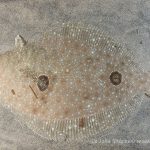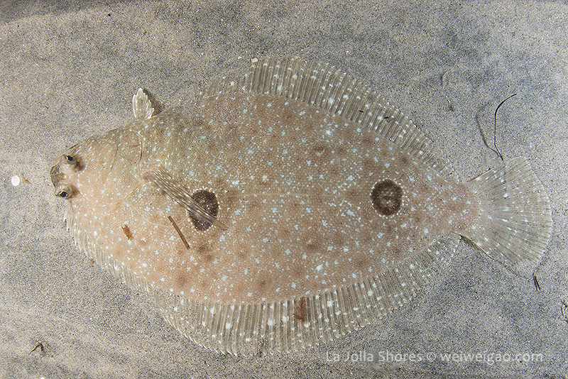 On my way back to the shore, on the sandy slope, I came across this halibut with two spots on the back. I thought the pattern was unique.