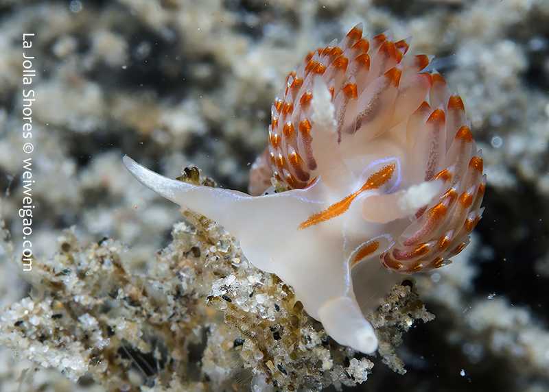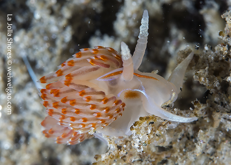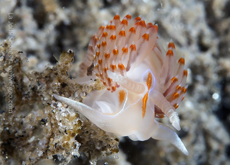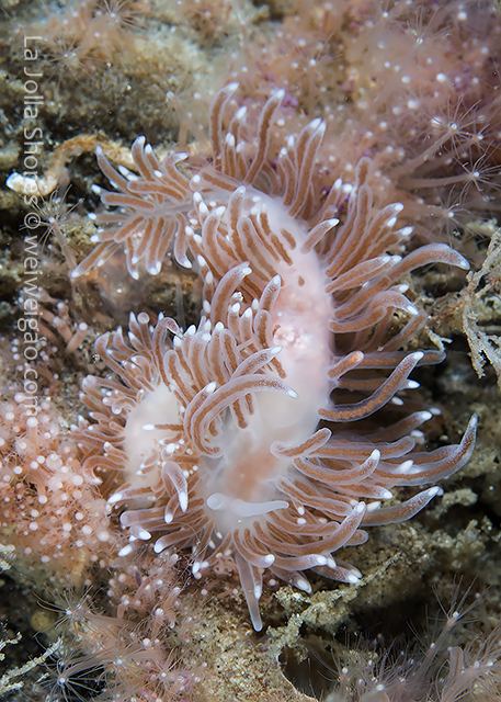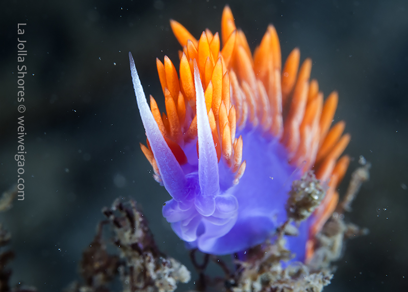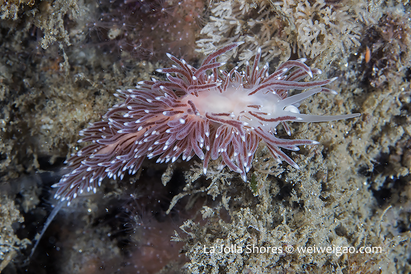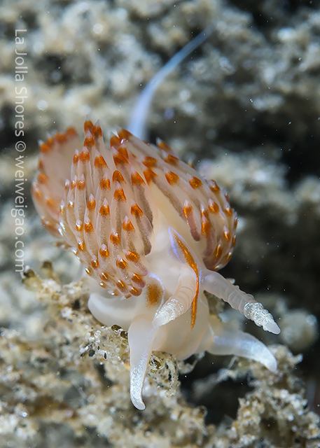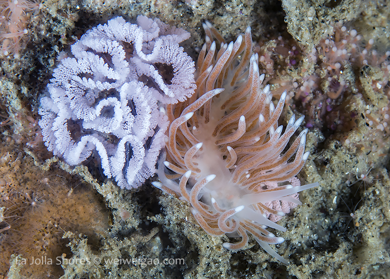 On the wall among the algae, I came across a Hermissenda opalescens that allowed me to get really close.