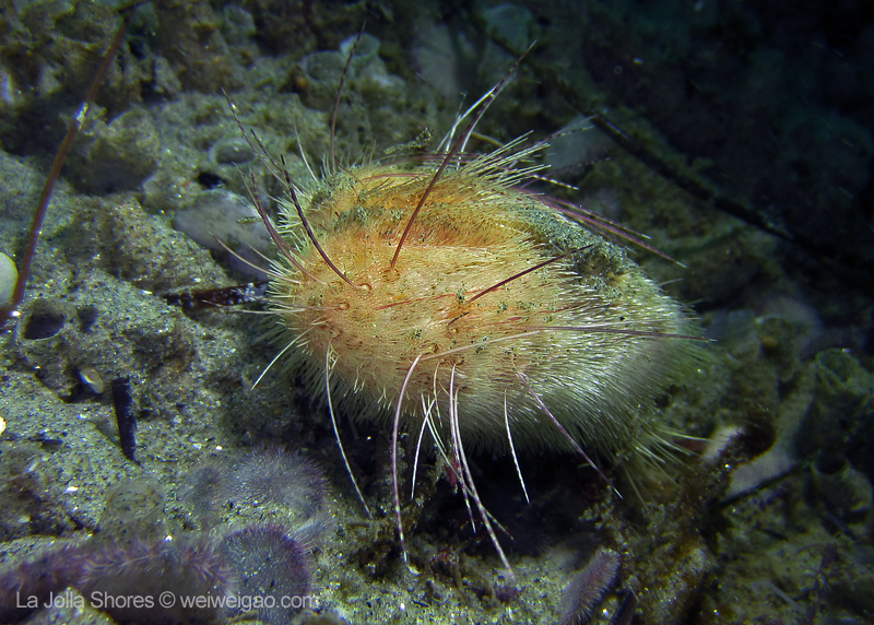 My first encounter was a heart urchin on the canyon wall. Heart urchin is a kind of sea urchin that has an asymmetric shape, with the head and the butt on each side. They crawl very fast by paddling their needles, contrasting other sea urchins that appear static most of the time.