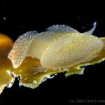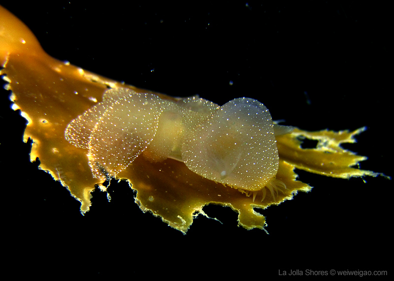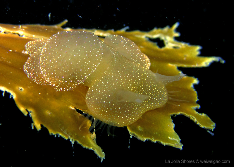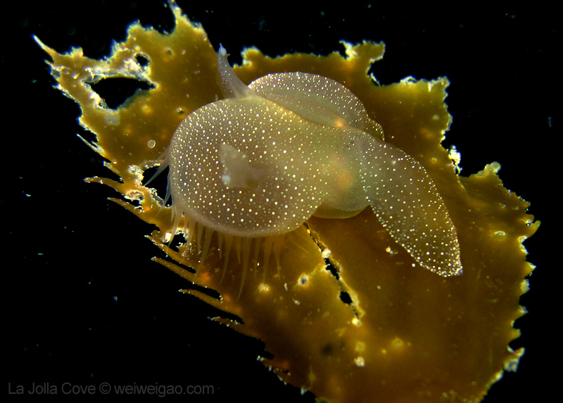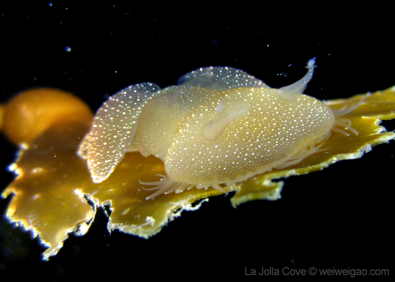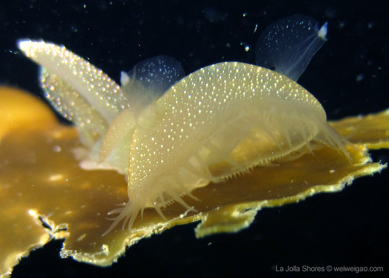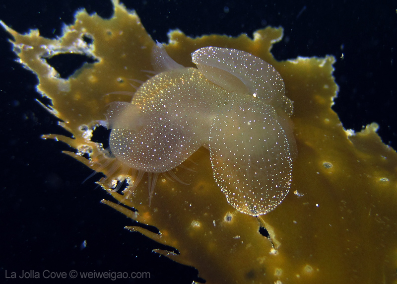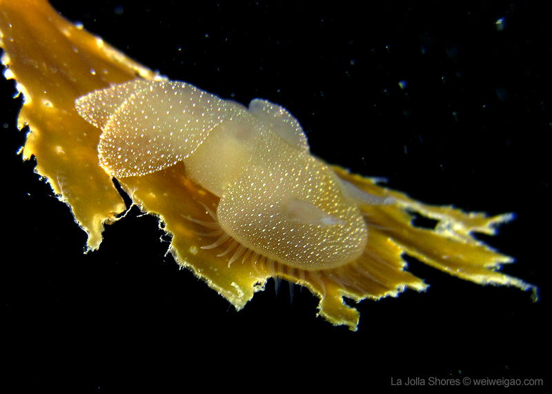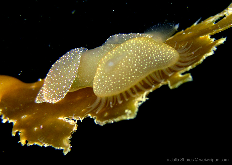 On my way to the patch, a lion nudibranch caught my attention. It was on a piece of drifting kelp. I was able to pick up the kelp and take a close look at it.