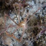 Another cool finding is the arrowhead crab. I got quite a few close-ups. A few shots show the crab eating a krill. Everything was so small while taking pictures and I hardly noticed until I started processing the images.