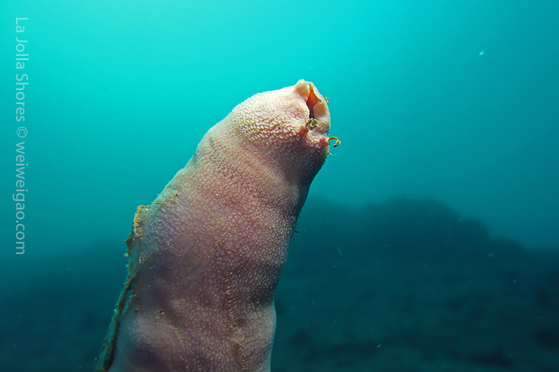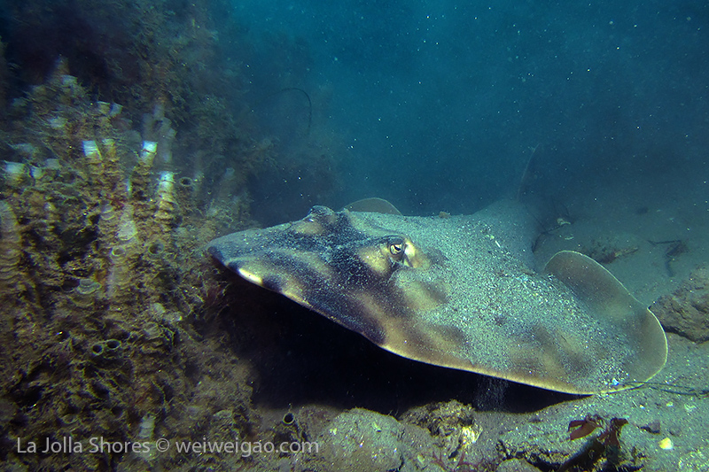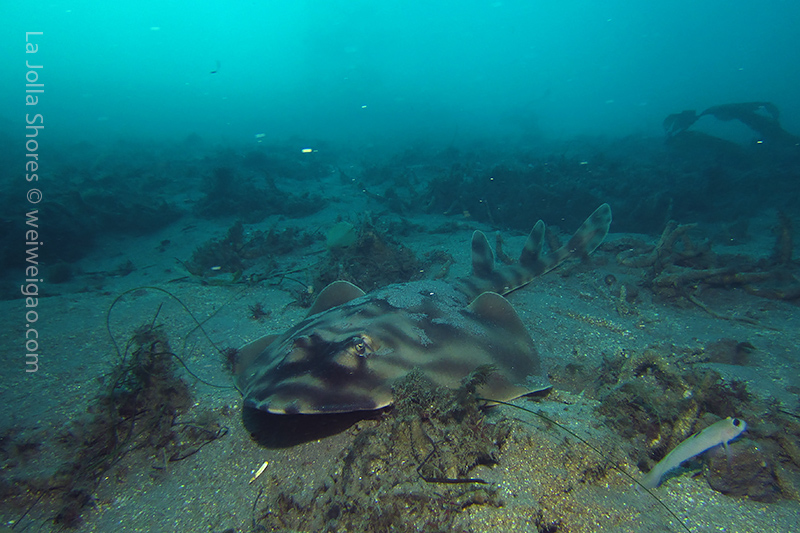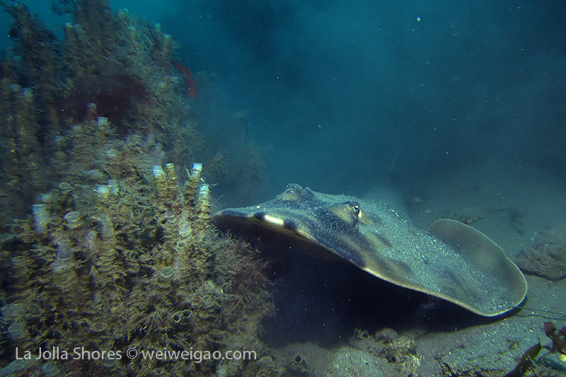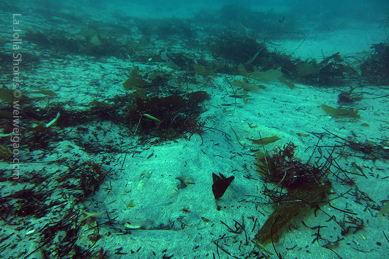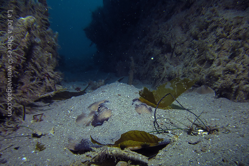 The big swell dwelling at the shore finally calms down. The condition becomes optimum for diving. I decided to get up early for a morning dive. I got to the shores around 6 am. The moon had set and it was still dark. There was no surf. Kayakers were launching their kayak near the ramp from far. The V street was occupied by OE truck. I parked near the safeguard station. There were only a few cars in the parking lot.