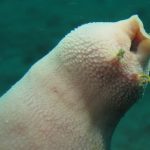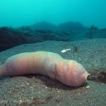 In one crevice, I spotted a huge worm. Compared to the peanut worm I saw before, this one was much bigger. It had small tentacles, like hooks but coated with shinning gold.