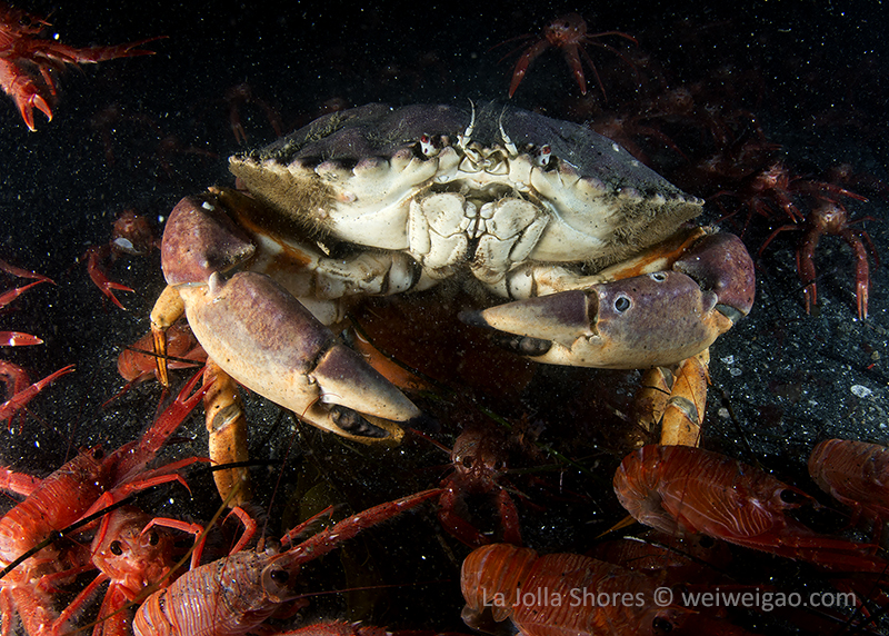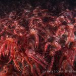 While I was cruising toward south, I could see as many tuna crabs as in the north. Even the vertical wall was densely occupied by the tuna crabs.