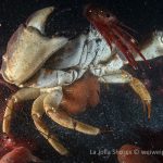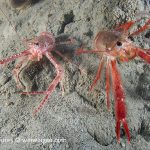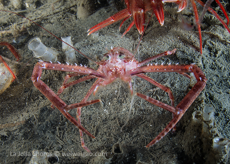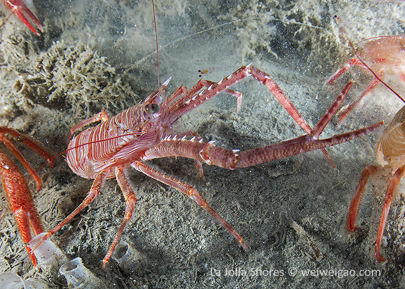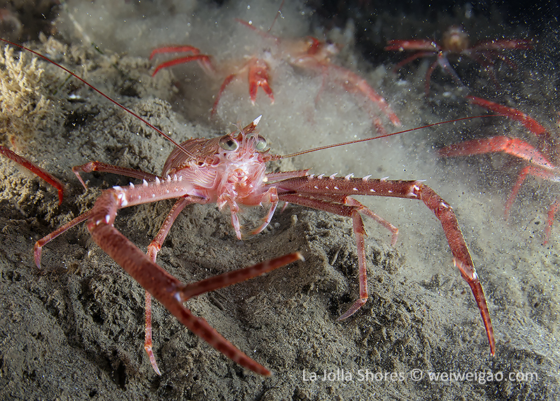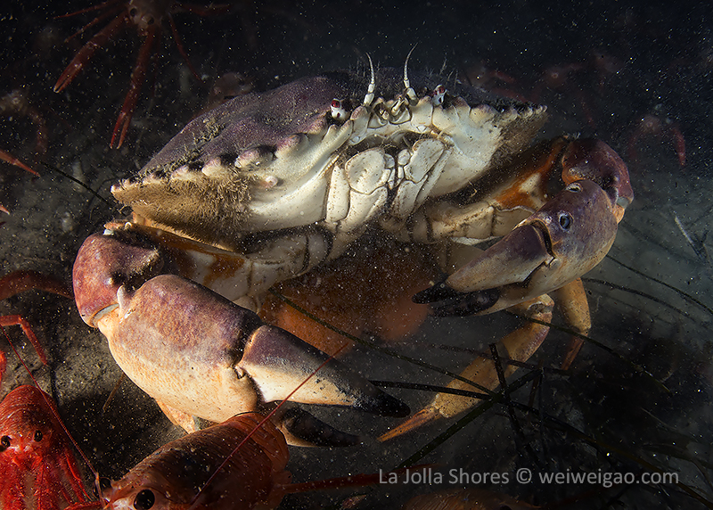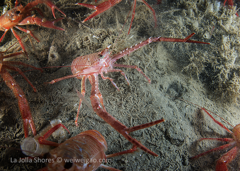 I decided to see what I could find among the piles of tuna crabs. Then this little squat lobster showed up. I have seen them a few time before but normally they are shy and stay mostly in the tiny holes on the wall. This one came out completely and it didn’t run away when the tuna crab started hitting it from all directions.
