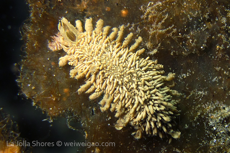 But one exciting sighting was right on the plat above the Vallecitos Point – a tiny creature I thought was a nudibranch. It turns out to be a Flabelliderma papillosa. Very cool found.