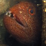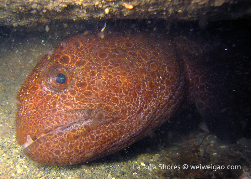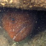 I couldn’t wait longer to take pictures of the wolf eel. Kicked fast from the main wall to the south of the V point. Here it was.