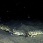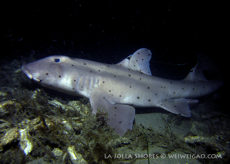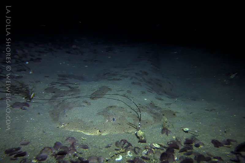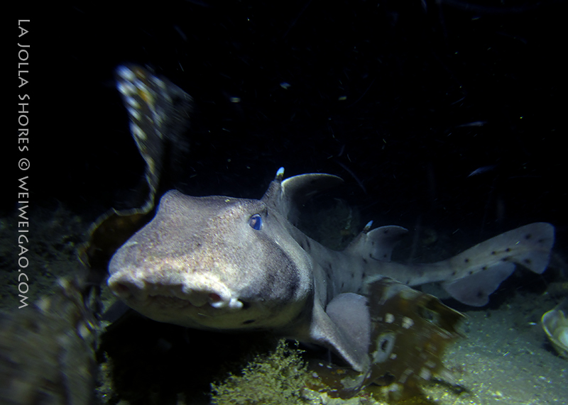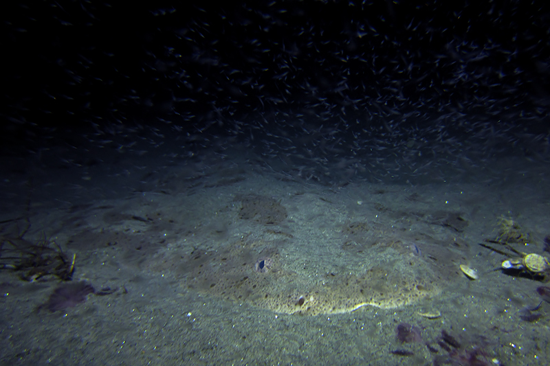 I kicked toward the patch. Right before the slope, I saw two big eyes glowing in the dark – an angel shark.