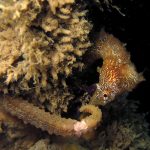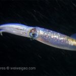 Another cool encounter was a squid at the shallow sandy. It was digging the sand with its tentacles. When I got closer, the squid started swimming toward the surface and slowly disappeared in the darknees.