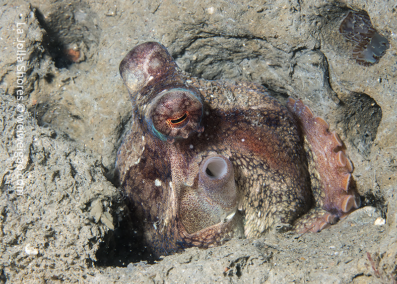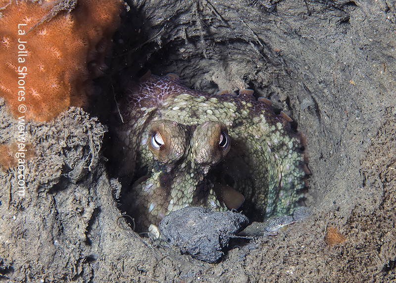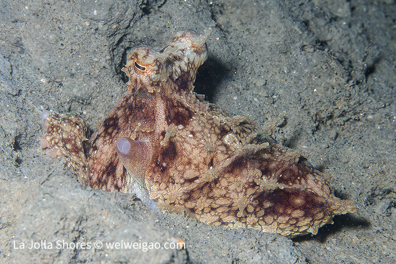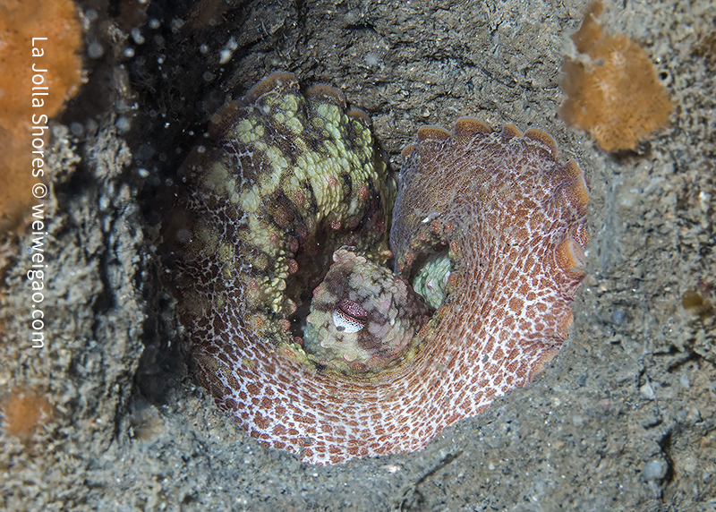 It’s a windy day. The surface was choppy and big swells kept on rolling in. I dropped a bit early and headed toward the south. There was still daylight in the water. Along the canyon there were lots of small-sized octopuses.