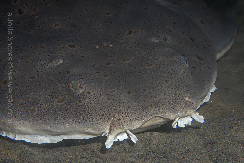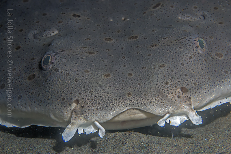 I turned to the shore at the V point. On the sandy slope I came across a big angel shark. With my macro lens, there was not much I could do to capture this beautiful creature. I was one of biggest fear that one day I would be in front of an amazing event with the wrong lens. I circled the fish a few times and took a few close up shots. Then it darted away.