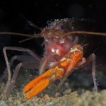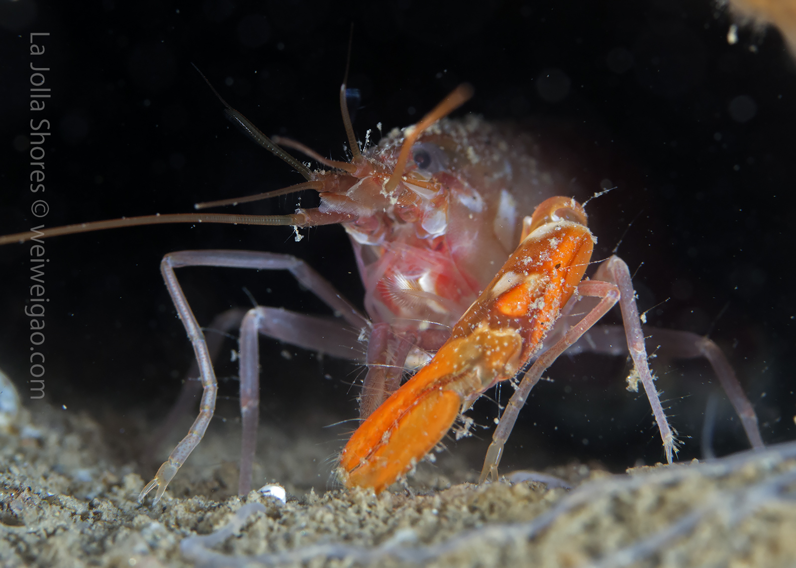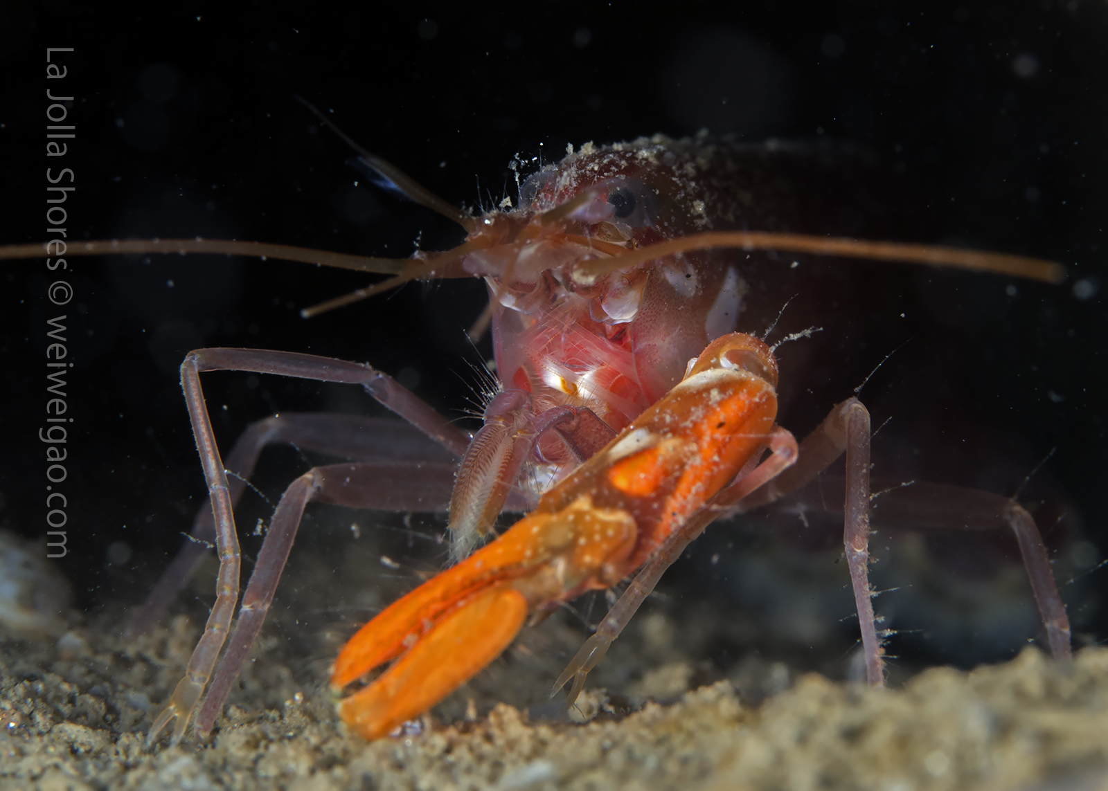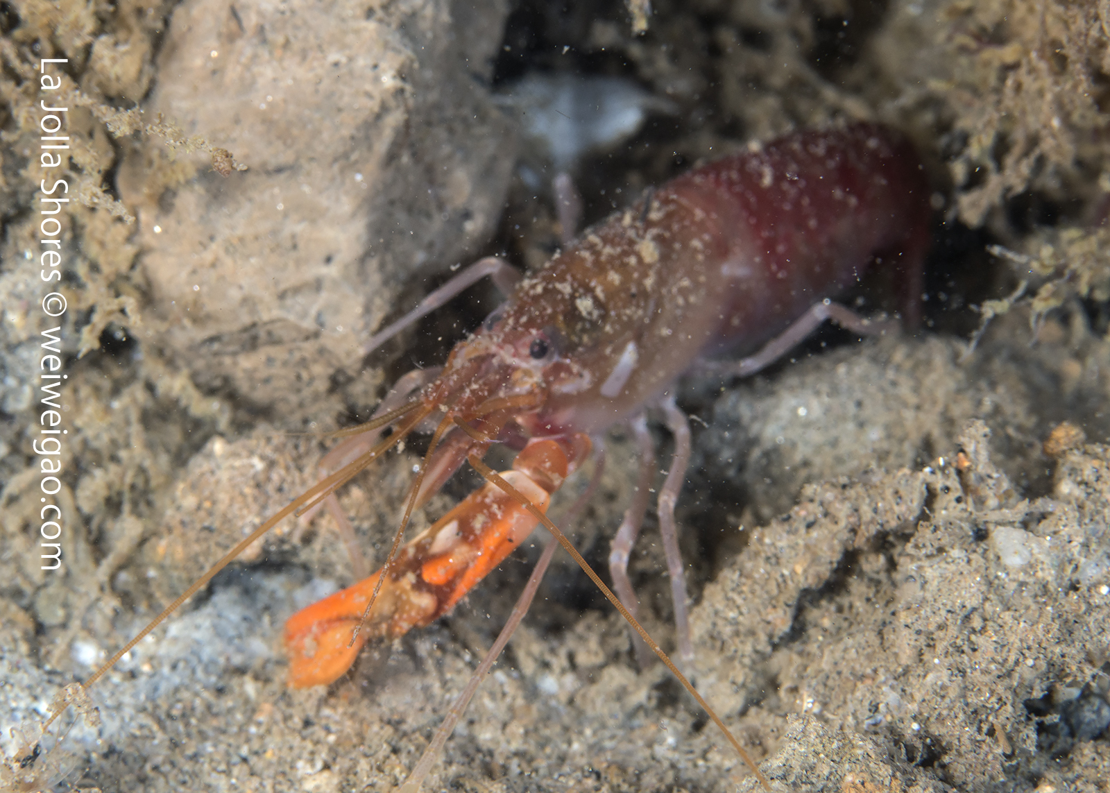 At the V point, I noticed a strange-looking shrimp with one big claw.