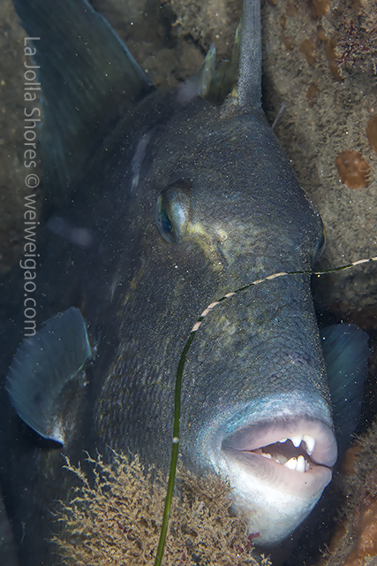 A little bit further up the road, a big Finescale Triggerfish was sleeping, wedged nicely on the wall with its dorsal trigger. Way cool. Haven’t seen one in a while. The sneaky current had dropped us way south this time, which turned out to be a good thing. Not sure what else was out, but Weiwei might have some good macro. A great dive.
