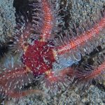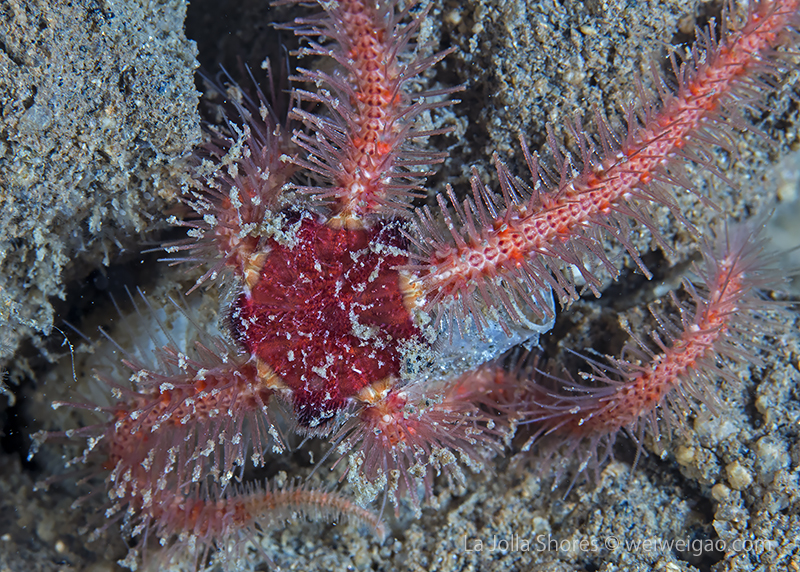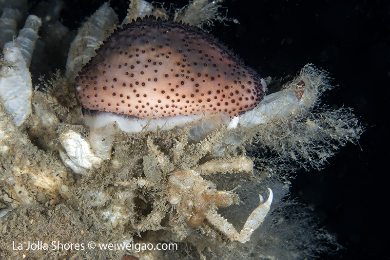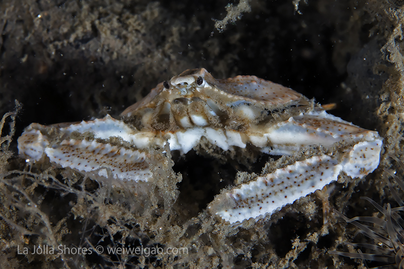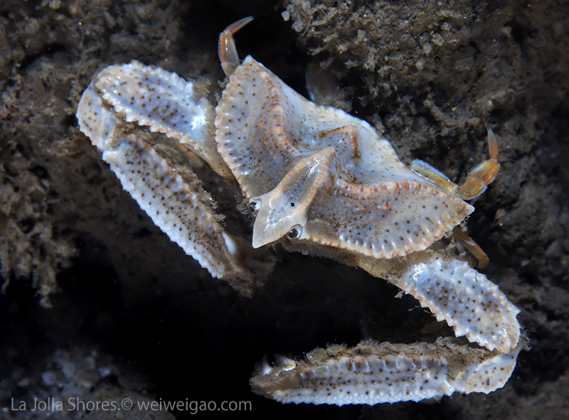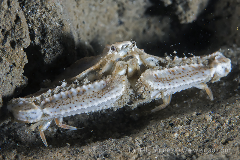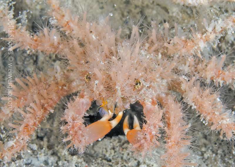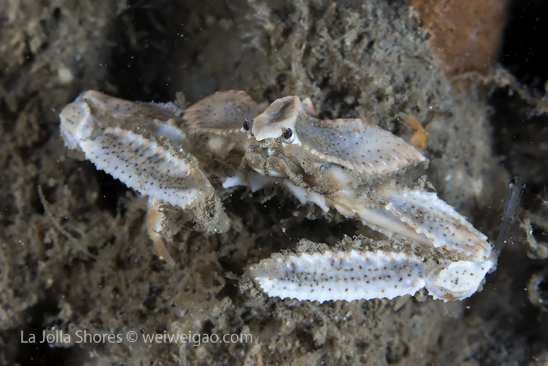 But the cool finding of the dive was a sandflat elbow crab (Heterocrypta occidentalis). I remember I saw this critter when I just started diving the area.