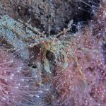 Headed to the shores for a night dive. The condition was great. One highlight of the dive was this cool little shrimp with two bright spots on its body.