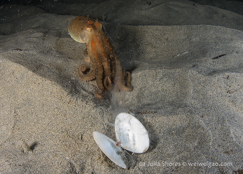 Quite some tuna crabs showed up on the slope at 80 ft north of the V point and individuals were scattered in shallower water.