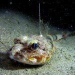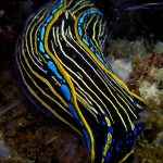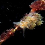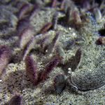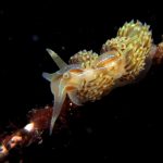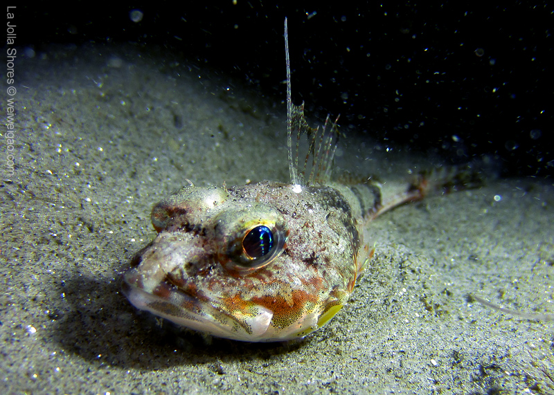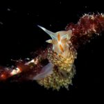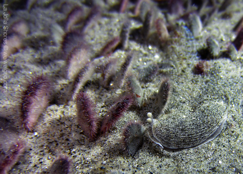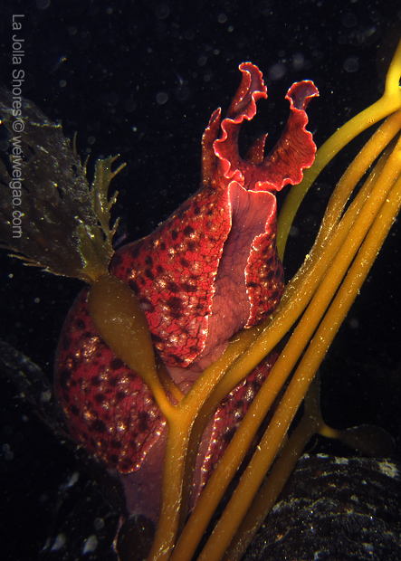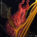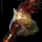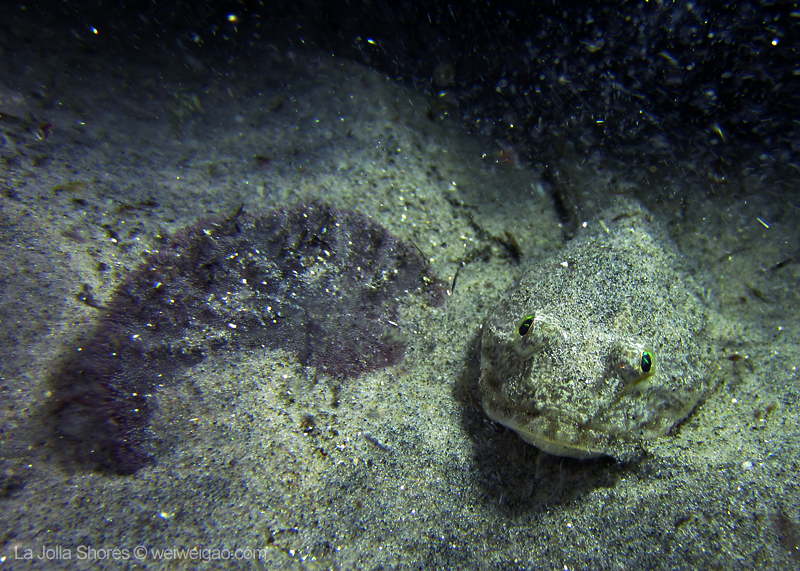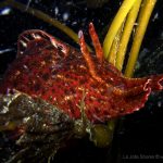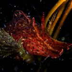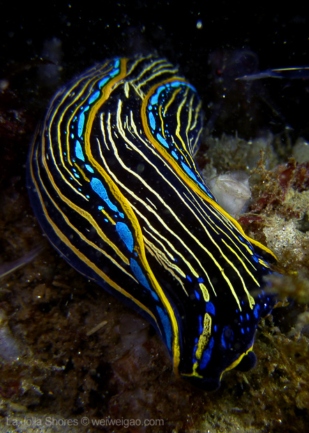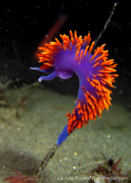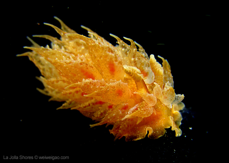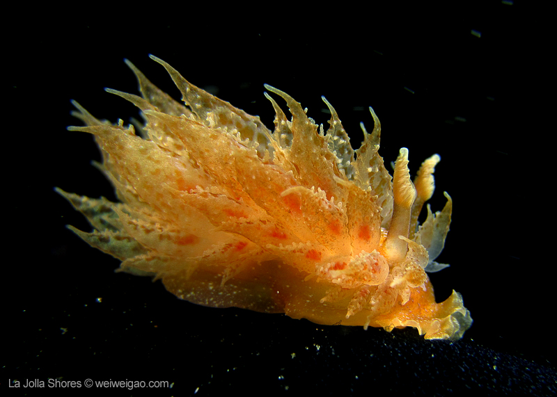 Exactly 12 hrs after Gayle’s report – the dive condition remained about the same except that the wind died down. The surf was minimum. Headed out with beautiful sunset to the crap patch. The visibility at the sandy flat was poor and salad-like. But near the canyon it was much better. I came across a lion’s nudibranch on grass as opposed to kelp – a great opportunity to see it from all angles.