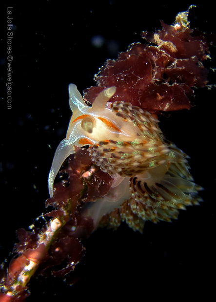 The patch was still full of wonder. This Hermissenda crassicornis had a green hue different from those I saw before.