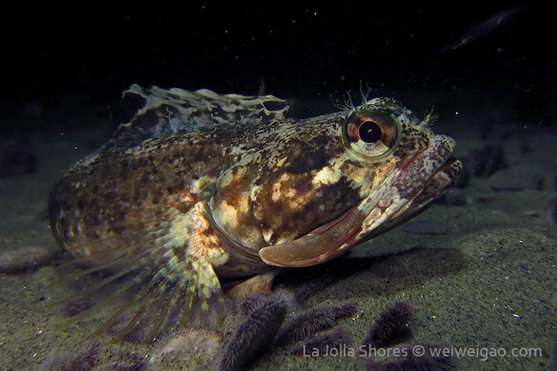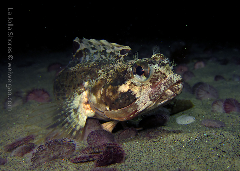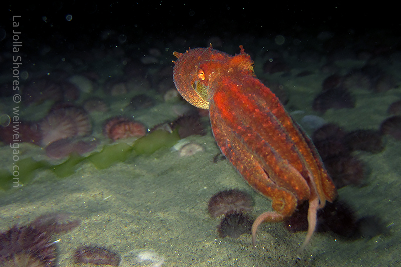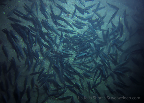 I am trying to vary the route of my dive and hope to make the sighting a bit different each time. Tonight, I decided to kick out further to the secret garden – as the day still gets dark early, getting to the secret garden is challenging. There is a bit twilight tonight, which helps the line-up. I dropped off a bit too north onto a grassy area. Strangely, there was a huge school of jack mack covering the ocean floor. It was fanatic. I think the fish was hunting under the dark. They followed me to the secret garden. Suddenly they dispersed and darted to the crevices. All the other fish was scared away. It was quite a scene.