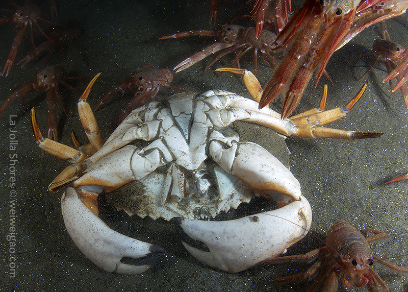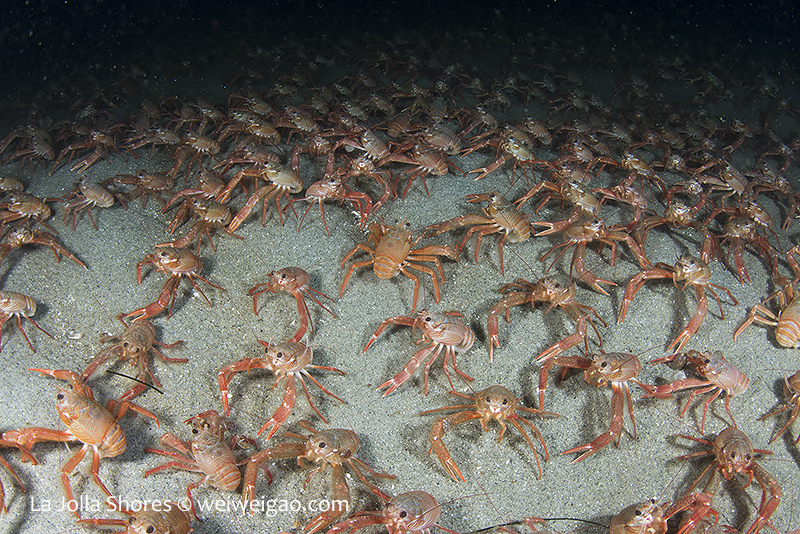 The shores has been flat recently with great conditions at the canyon. I headed out for a night dive. There was basically no surf at all and it was an easy kick out. When I dropped down at the lip of the canyon, I was surprised to see many tuna crabs. I hope this is not the sign of another round of invasion.