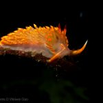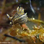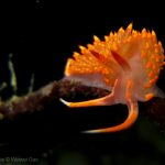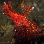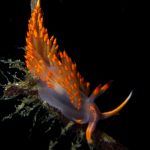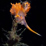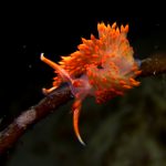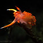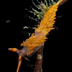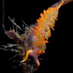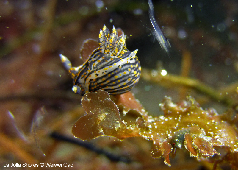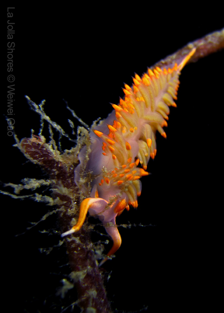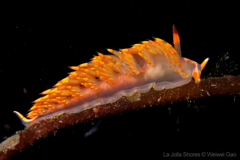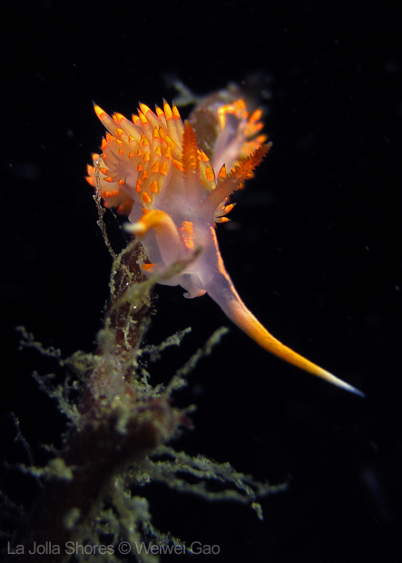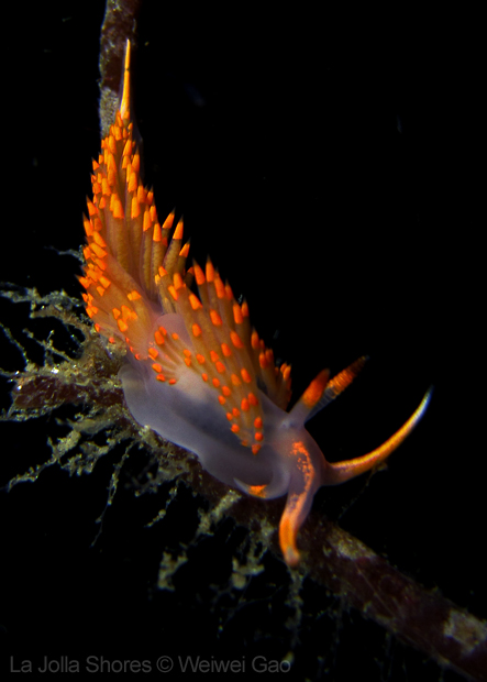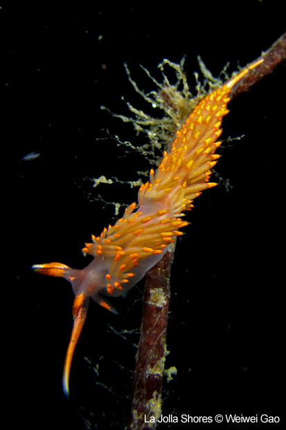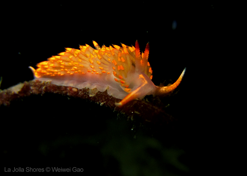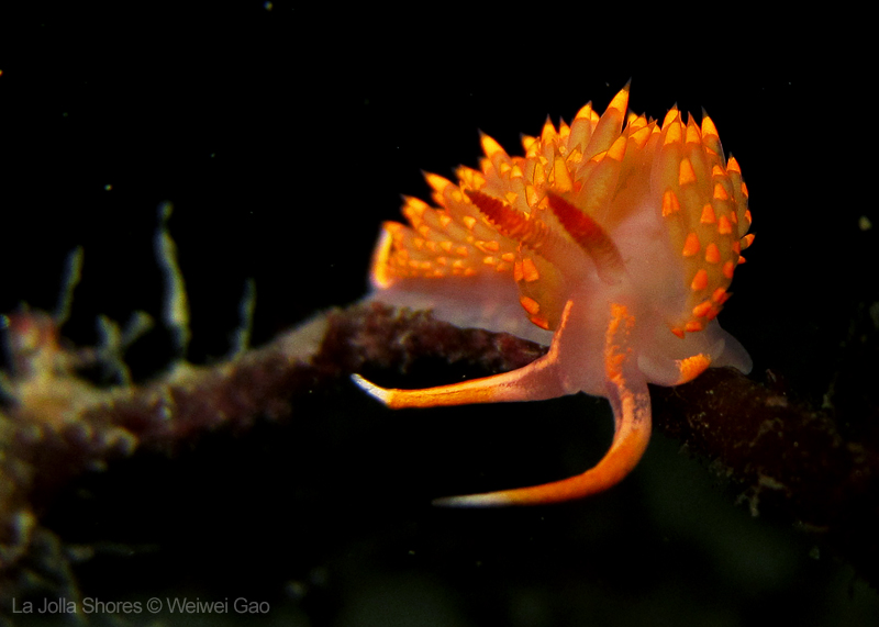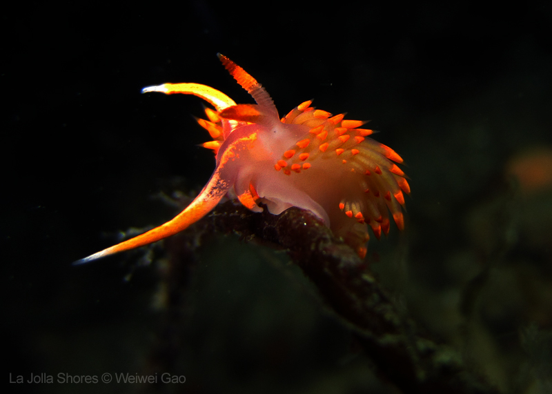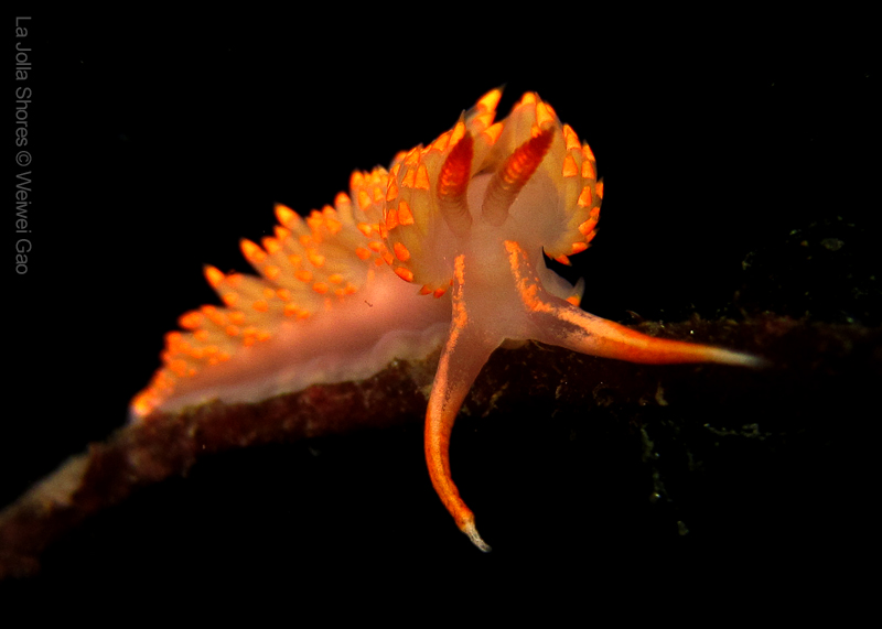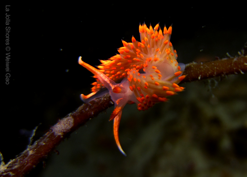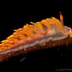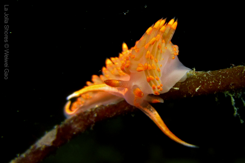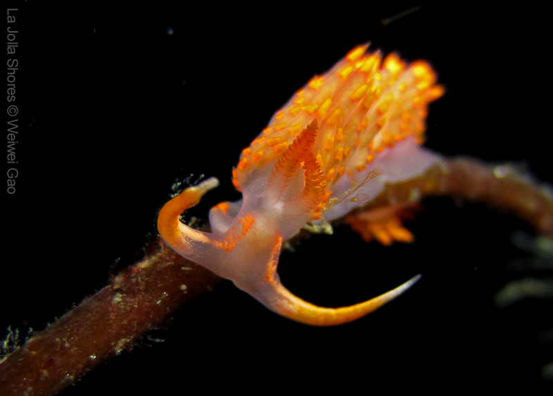 At the point, I saw the wolf eel again. A little bit to the north, the Stearn’s Aeolid family was all out and about. One of them was hanging out on the kelp. I spent quite sometime with this guy.