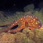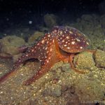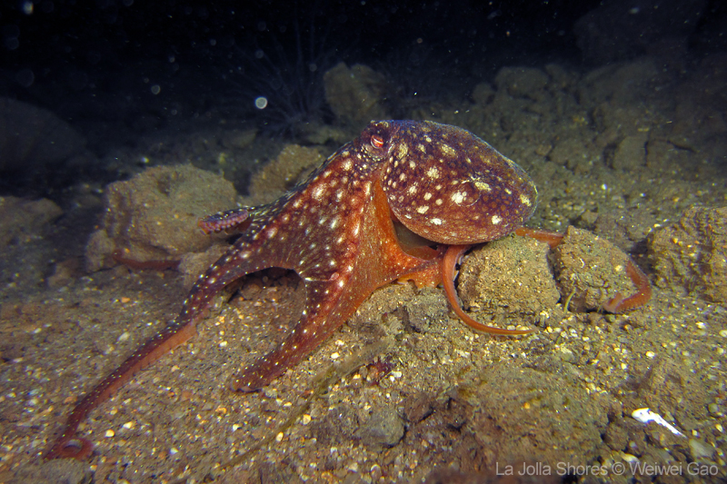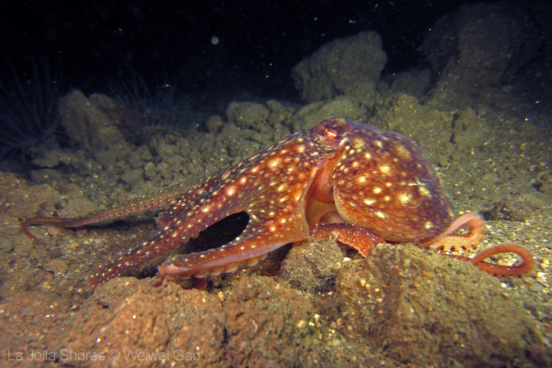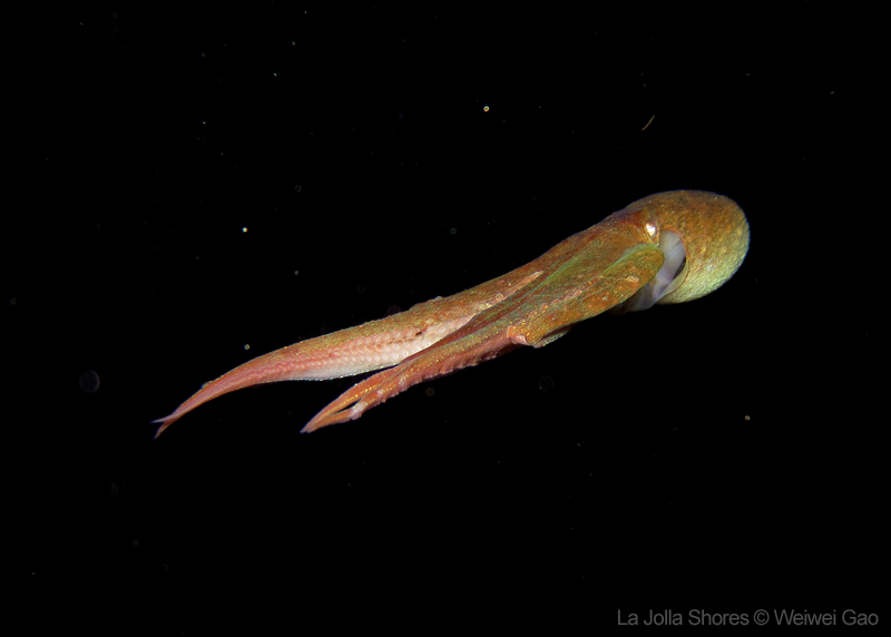 Saw a lot of critters on my way to the point. A sea lemon was busy laying eggs and lots of shrimps. Then I came across this octopus, not on the ground but swimming toward me. I always wanted to have a picture of an octopus with pitch black background. This time I was close.