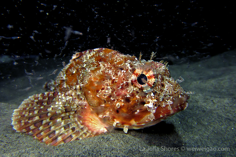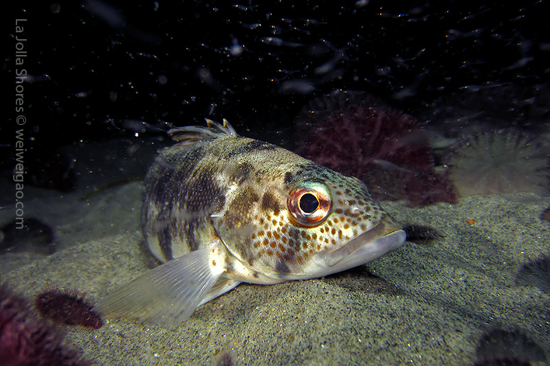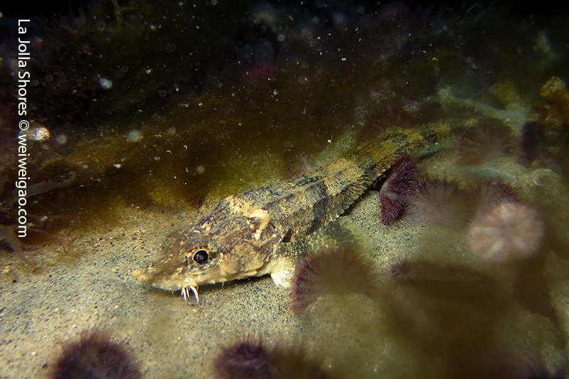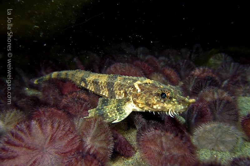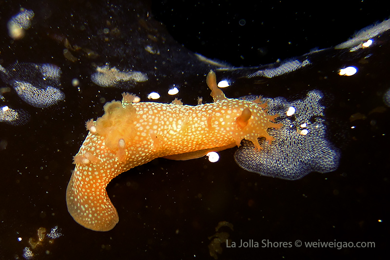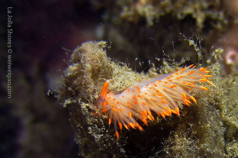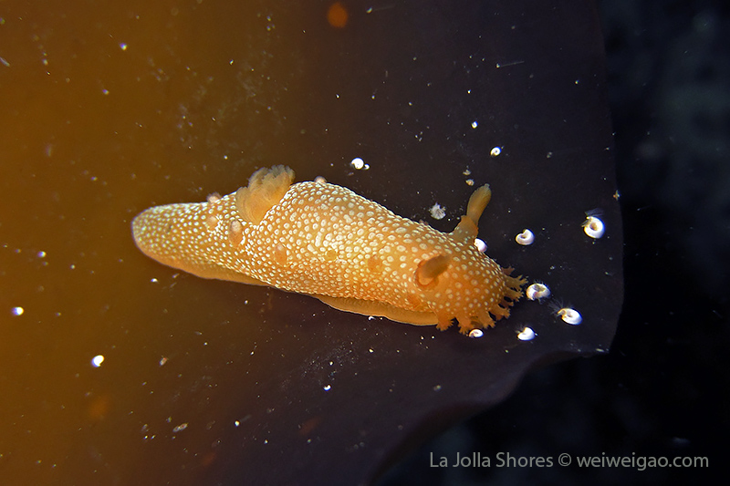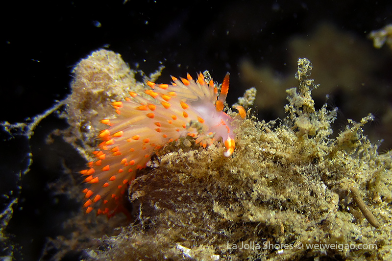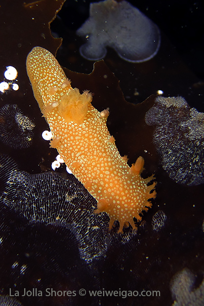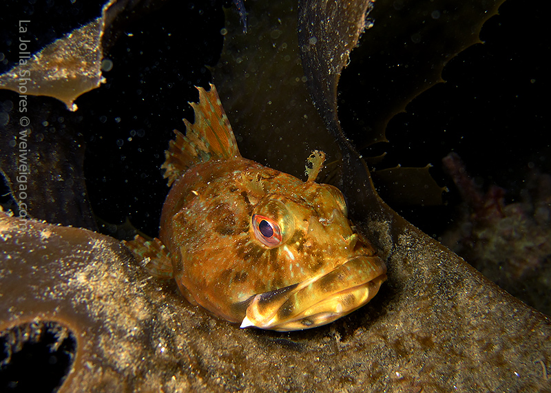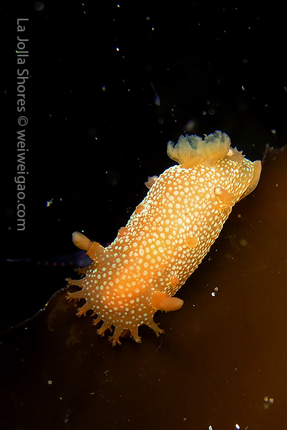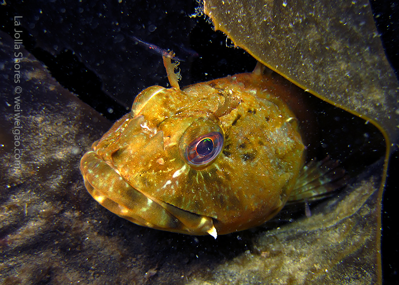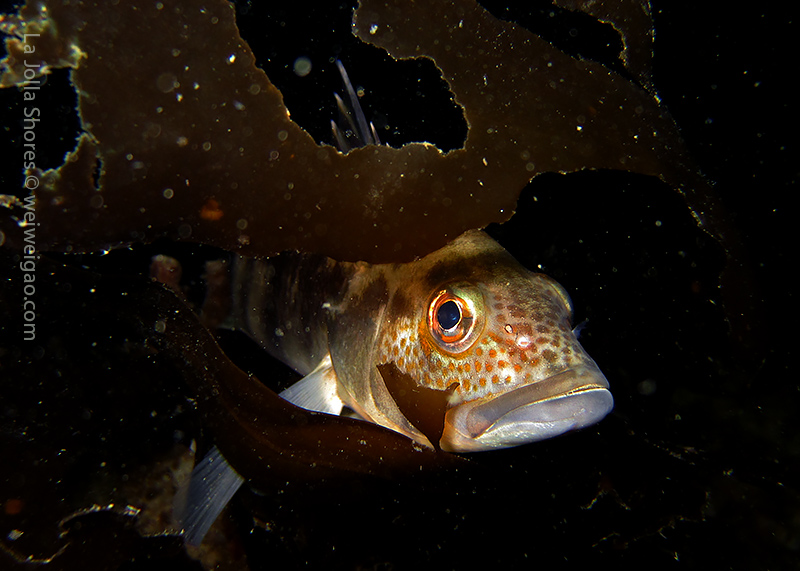 From the secret garden, I headed to the V point. At the canyon ledge near the V point, I spotted a triopha hanging on the kelp.