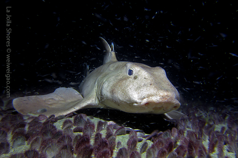 The only big animals I saw was again a large adult horn shark. Somehow this one also didn’t shy away from my light.