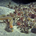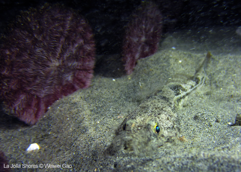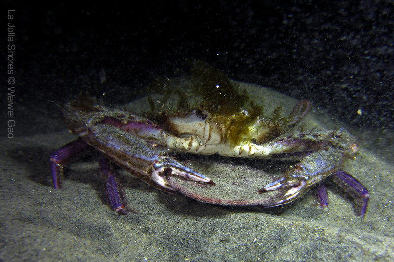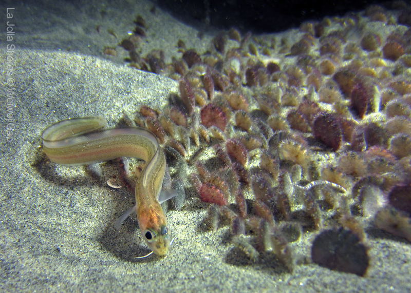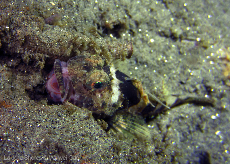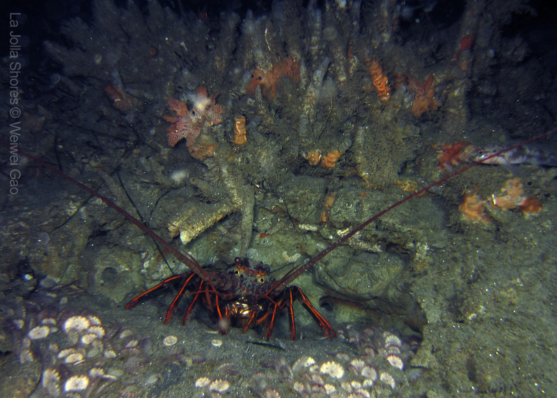 We dropped into really nice environs, and made our way down slope. The baby Sanddollars have blanketed the area nicely. Secret Garden can be elusive at times, especially at night. Be we kept going, and it appeared. A few lobster dens were occupied, then in the distance, the Gorgonians revealed themselves. Highlight critters include Poachers, Greenlings, various crabs, Cusk Eels, and juvie Rockfish.