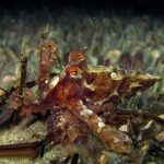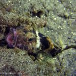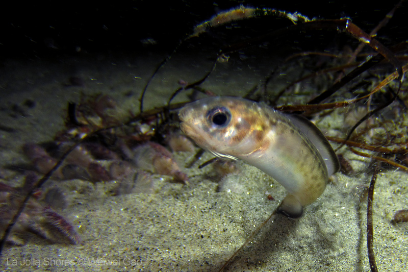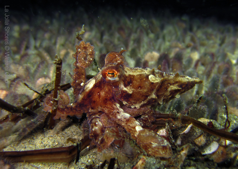 We then headed back toward the Crap Patch and spent some time there as well. Lots of crap which was home to many critters; Scorpionfish, Target and Blackspotted Shrimp, lots of tiny Octos, small Sarc. Fringeheads, a few Stingrays, a small squadron of squid off in the distance, and Weiwei found some nudis. Various areas had noticeable pockets of temp differences, but it was fairly clear despite floating snotties, calm and just a nice leisurely long night dive. Now I just need to invest in some video lights!