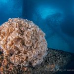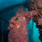 The boat ride was about 90 minutes. The plan was to dive the single rig (Allen?) and then the twin rig. Oilrigs are fun to dive. I had been thinking how to position the camera for a great shot. I don’t know what was the best single shot to represent the whole concept of the rig. For the total three dives, I had a lot of exciting pictures. The first set was a few I took in the first dive. The structure was a small pylon attached to the big ones. My lens could just cover the whole structure.