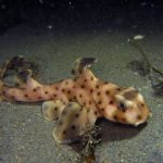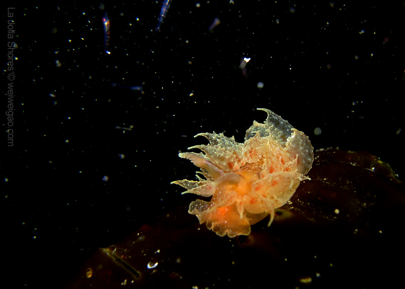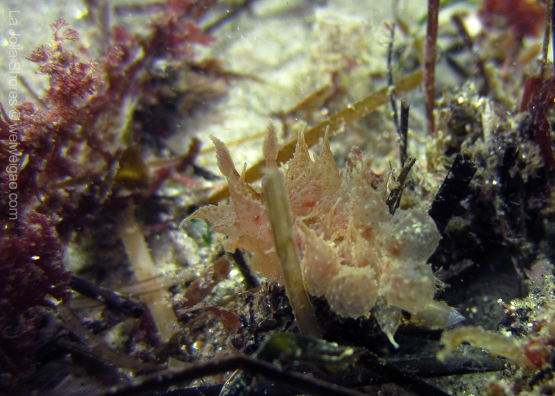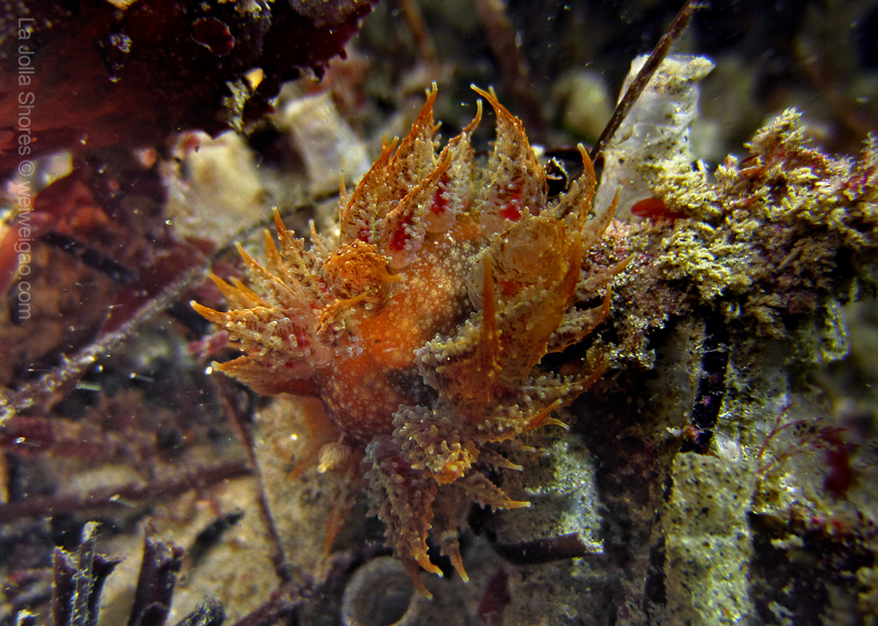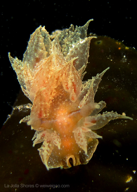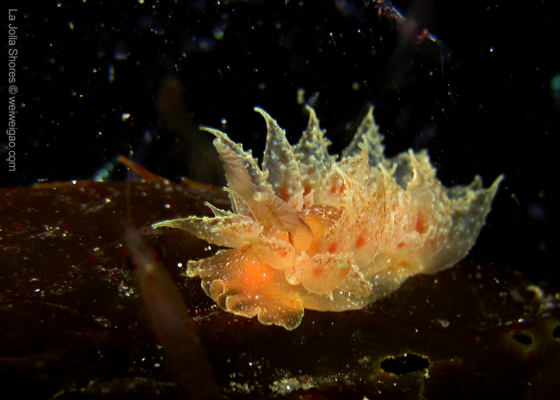 Despite the strong waves, Sam and I ventured out to the shores. We decided to go to the north and headed south to the Valecitos Point. At the sandy shallow and the grassy area near the V-point, the surge was very strong and the visibility was only about 5-10 ft. As the goal of going to the grassy area was to see the nudibranchs, we easily found quite a few Dirona picta.
