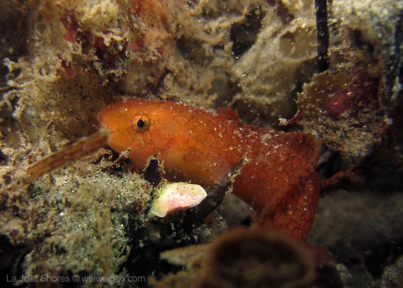 Also near the kelp, I saw two cling fish – it was hard to get a good picture because they like to stay on the kelp, swinging all the time.