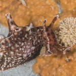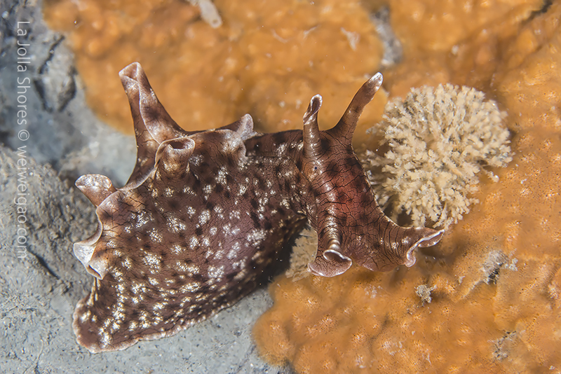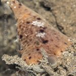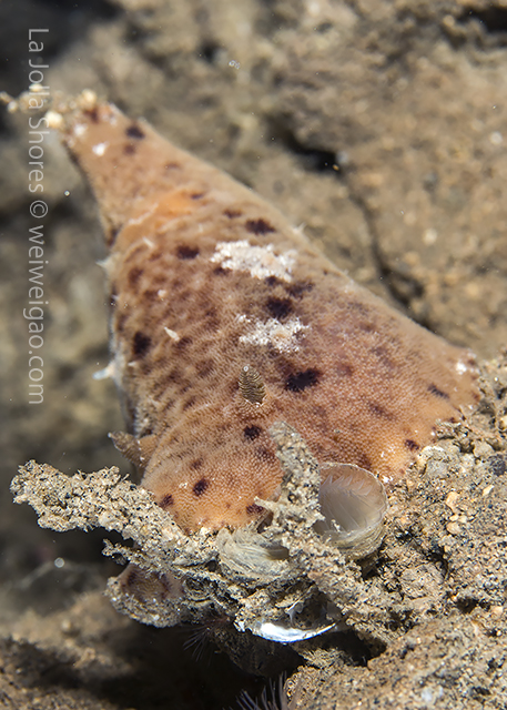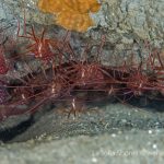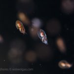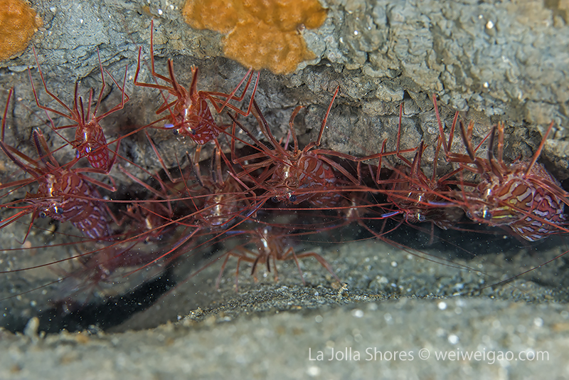 Taking a closer look, I realized that the tiny ‘bugs’ were octopus babies, most likely just hatched from the eggs. Attracted by my dive light, they swam toward me. I could see that each of them was the size of a rice grain. With only a few pigmented patches, their bodies were largely transparent. They swam hard, squeezing their body to gain propulsion. This must be their first journey away from ‘home’. Fighting against the surge seemed futile to these little creatures. The swarm slowly dispersed into the darkness.