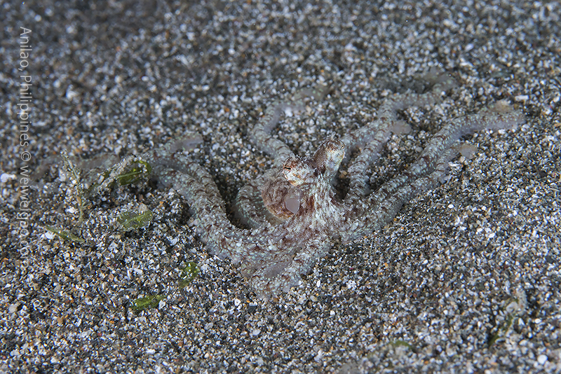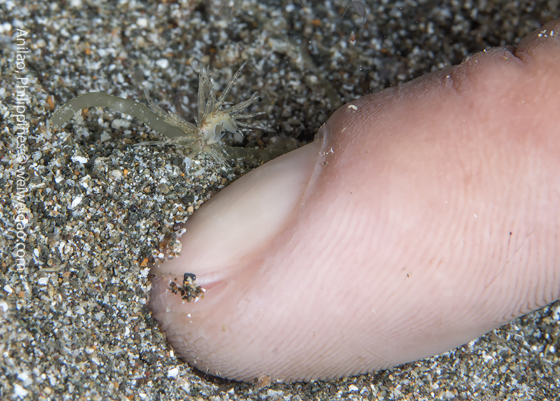 The site is just a open sandy flat right next to the ‘pier’, which had disappeared a few year ago. It’s a shallow muck dive and I felt that the three-member crew was an overkill. But I figured this was probably how the dive business should be running here. It’s all boat and all with companion of a dive master. Carlo told me he recently spotted a fishing net under water, which had killed lots of critters. He also warned me about the trash – I told him that I was used to dive in very ‘dirty’ water. The diving was half what I expected and half what I didn’t. I know Anilao is full of small critters but what I didn’t know was that there were so many. I was going one after another. Before I could even get my strobes right, Carlo would signal me for another one.