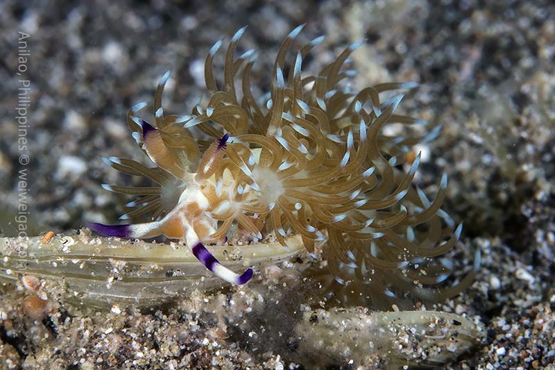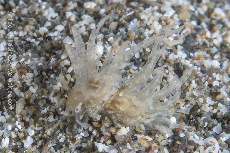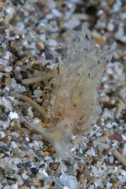 Talking about tiny sizes, this unidentified aeolid is a true miniature. I had a difficult time to photograph it.