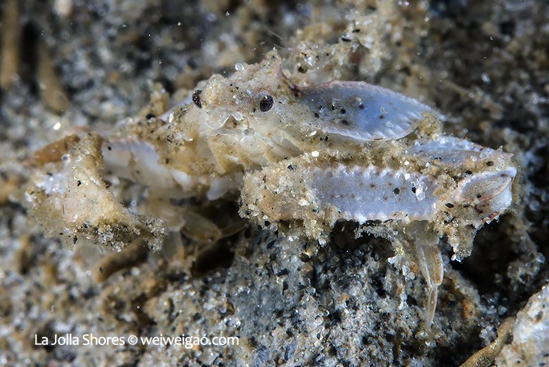 Another cool critter was a juvenile sandflat elbow crab (Heterocrypta occidentalis) I saw on my way back to the shore.