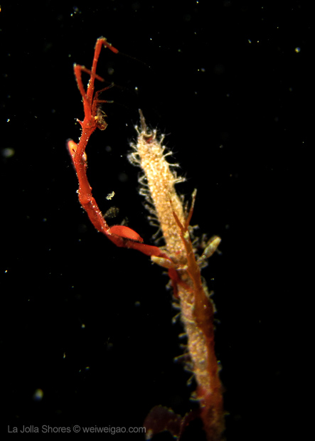 Among all the critters I came across, one interesting sighting was this tiny mantis-like worm on the tip of a twig. I took a few pictures before I realized there was actually a pair of them.