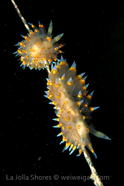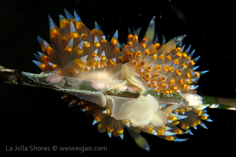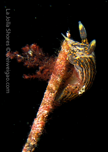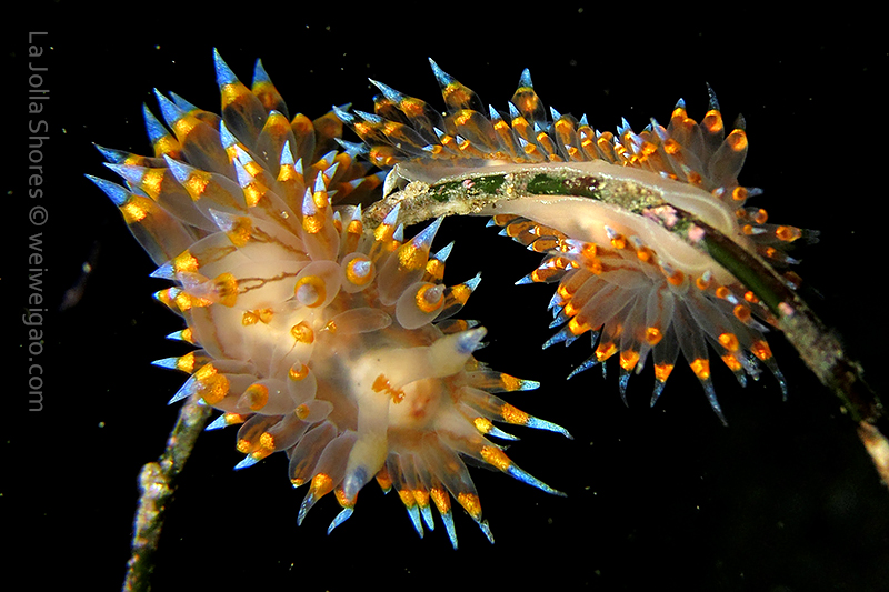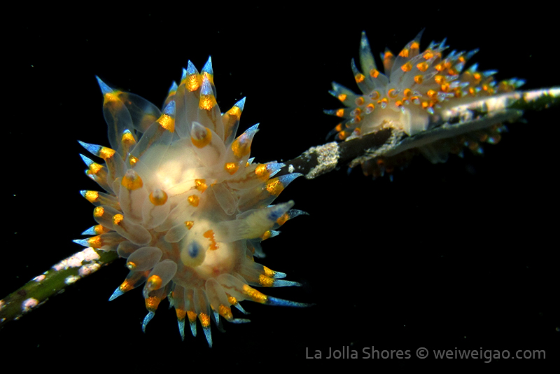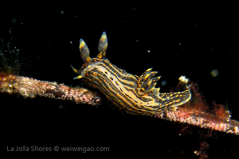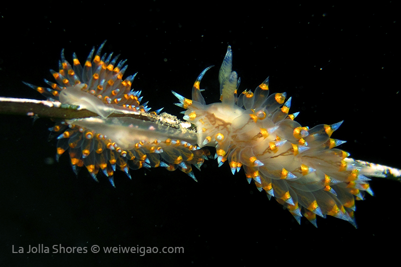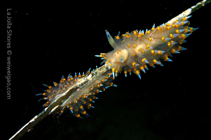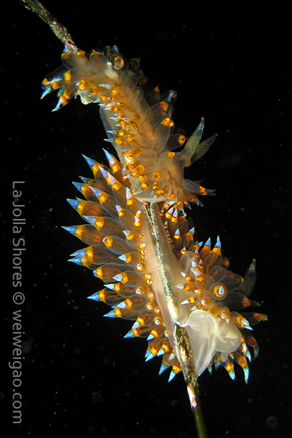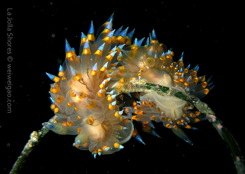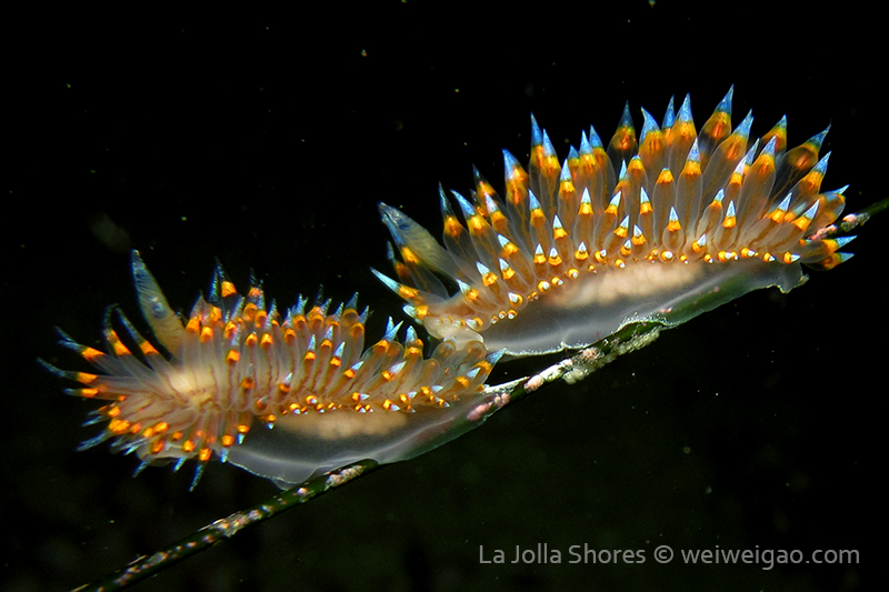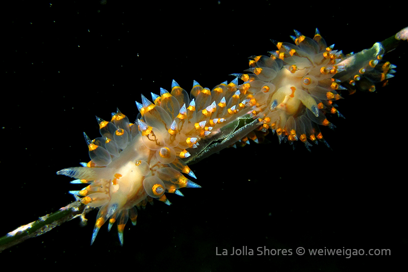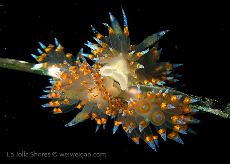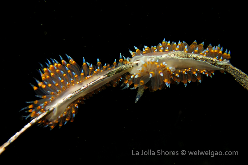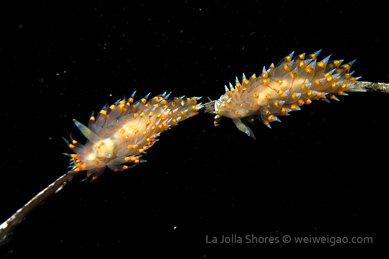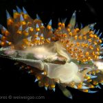 I could have stayed longer to watch the fish but didn’t want to disturb it too much. After a few kick, I saw a pair of janolus on the grass. I rarely saw a pair came this close and started taking pictures. The patterns and the color of this creature were remarkable.