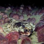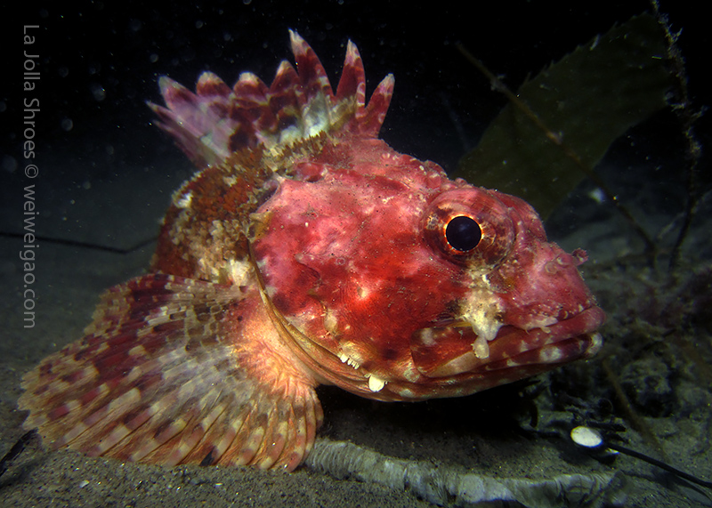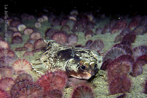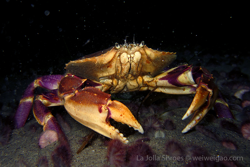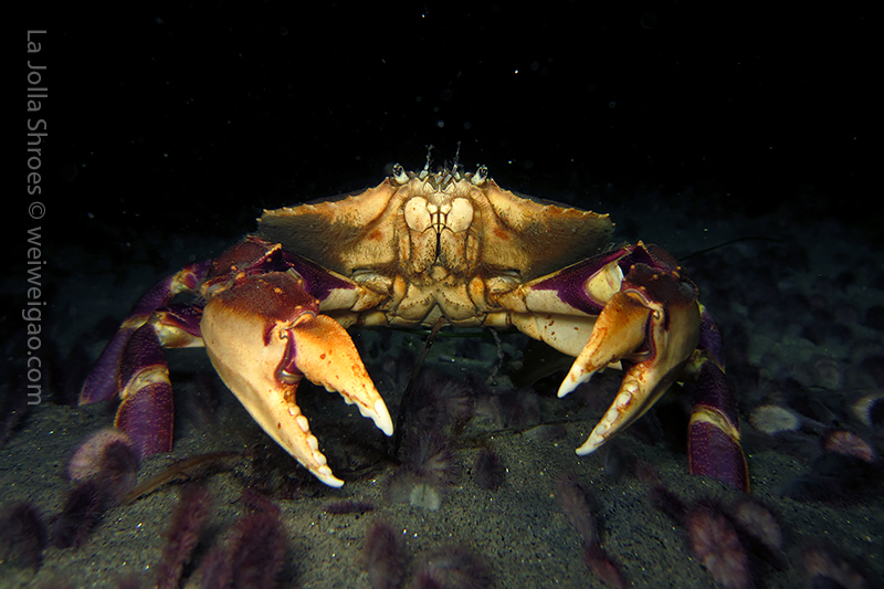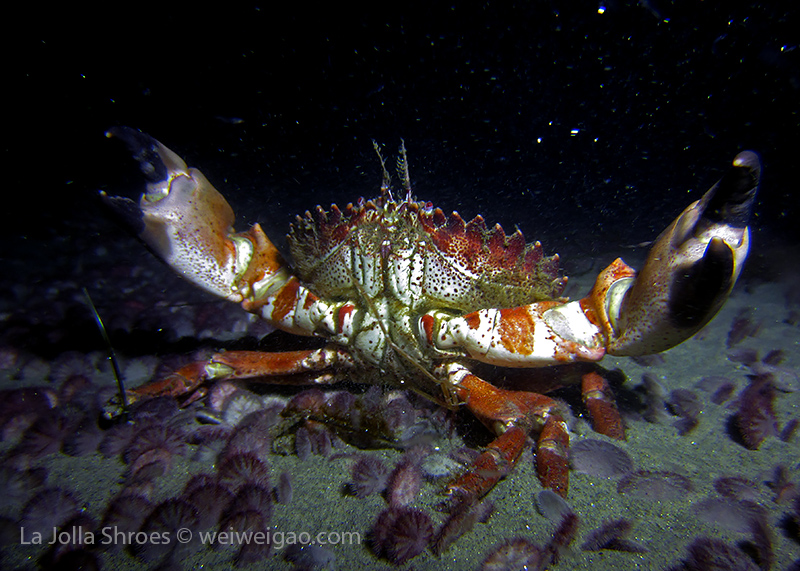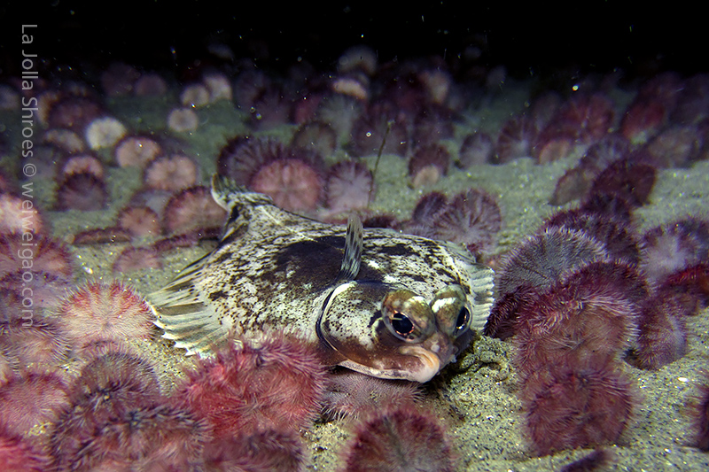 One signature scene of the shore is sand dollar patch near the canyon drop, where you can find all kind of creatures resting on the ocean floor. I like to take pictures of them at night, with the pitch black background, just like this C_O sol I saw tonight.