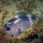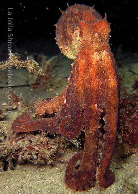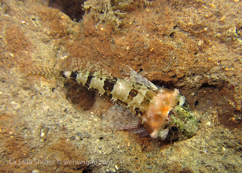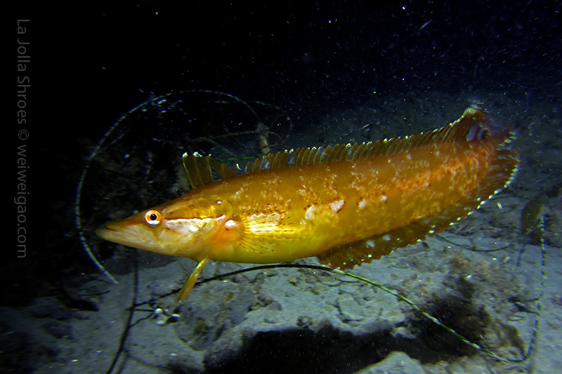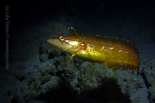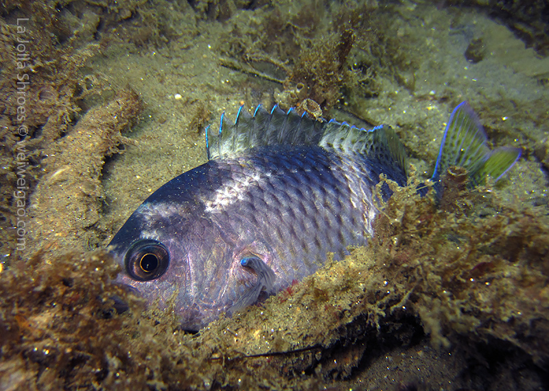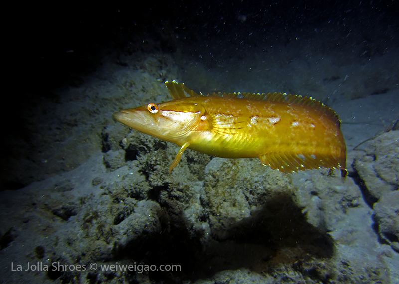 Near the Vallecitos point, the kelp has grown significantly. The area now has become a nice patch of ‘kelp forest’. The giant kelp fish, with golden color, like to hide themselves behind the fronds. They are shy, always trying to stay away from my light. Sometime, they just climb down the kelp and swim away.
