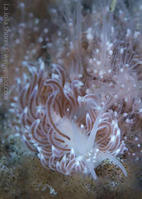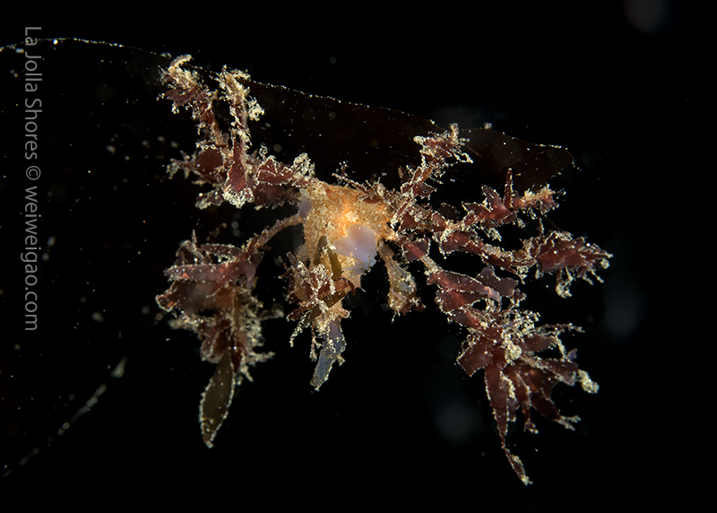 Met up with other folks for a routine Thursday night dive at the shores. I dropped off at the main draw and decided to head south this time. I have not been to the south for a long time. I came across the algae that I used to find Cuthona divae. They have disappeared for a while, but to my surprise, this time there was one.