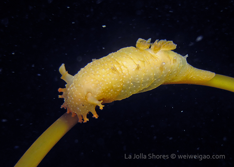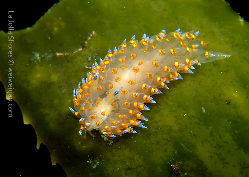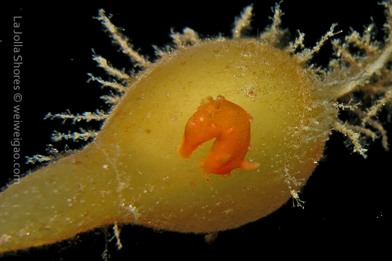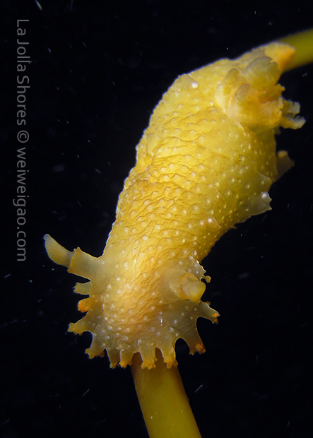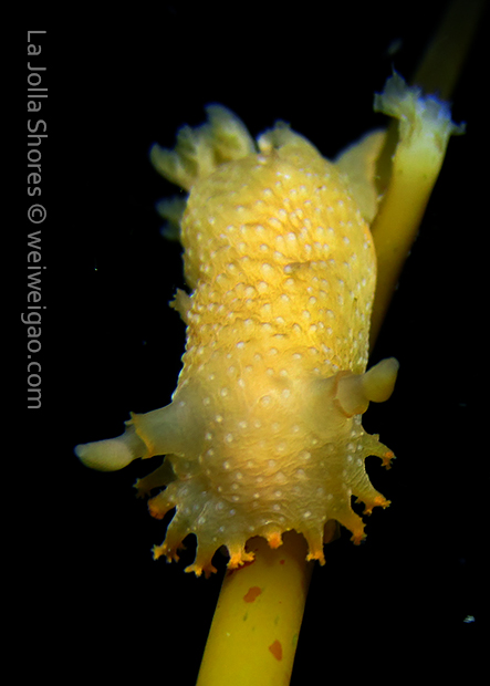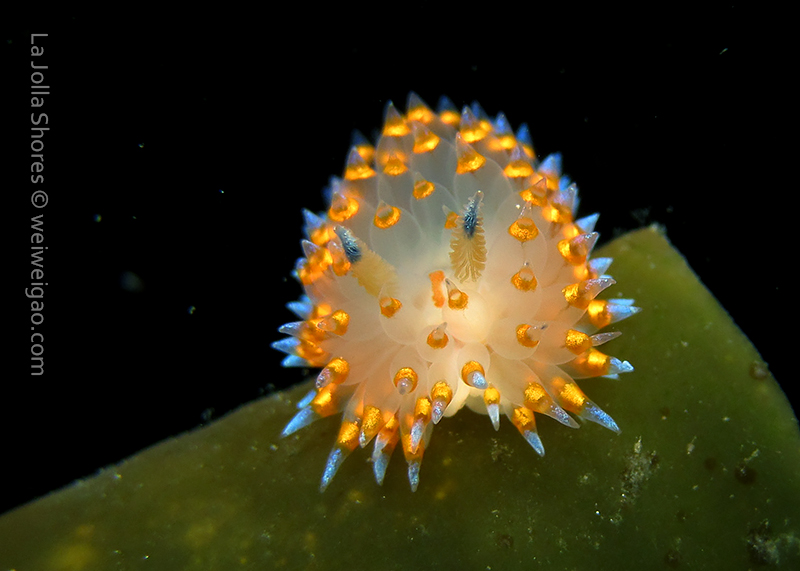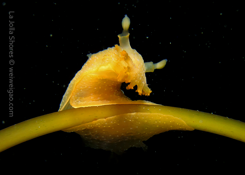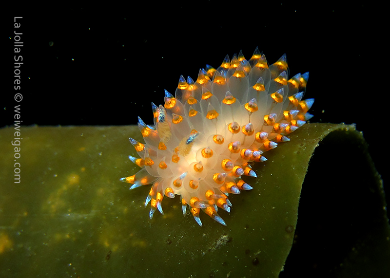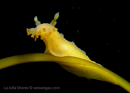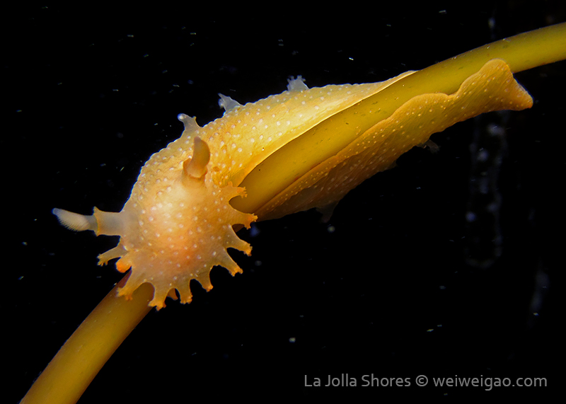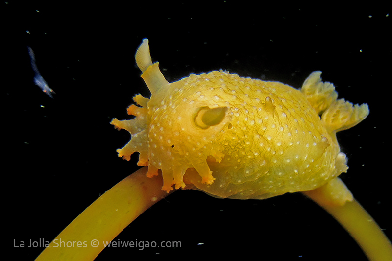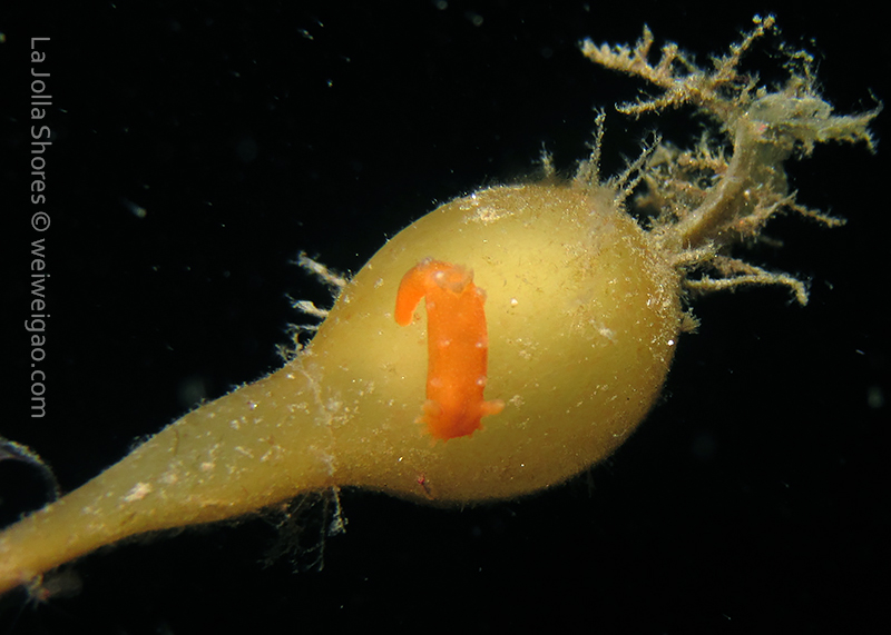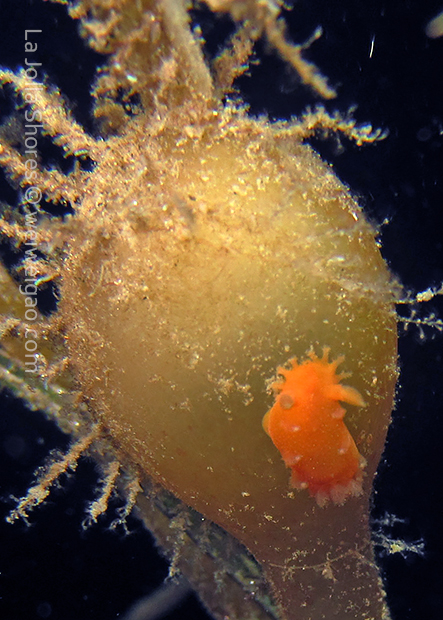 When I got to the kelp patch near the V point, a little orange spotted triopha on the kelp caught my eye. It was really cute.